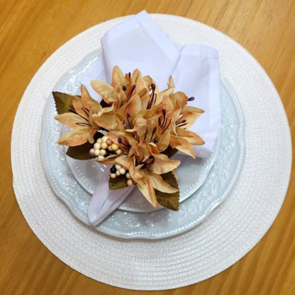 Maison Charlo Set of 4 Caramel Lilies Flower Celebration Napkin Rings