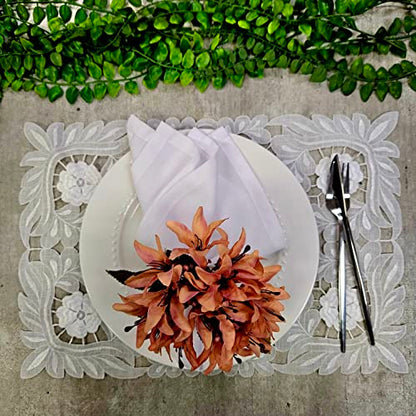Each napkin ring in this exquisite set of four is a labor of love, meticulously crafted by skilled artisans who pay close attention to every detail. The lilies, made from fabric, and the rings, carved from natural wood, together form a breathtaking ensemble that is light in weight yet heavy in style.