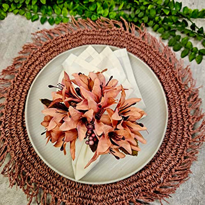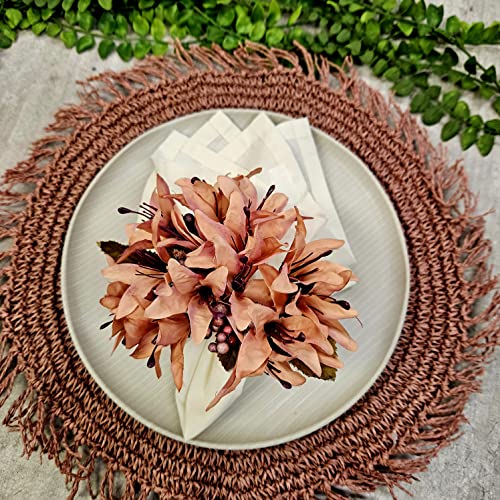 Maison Charlo Set of 4 Salmon Vintage Lilies Flower Celebration Napkin Rings