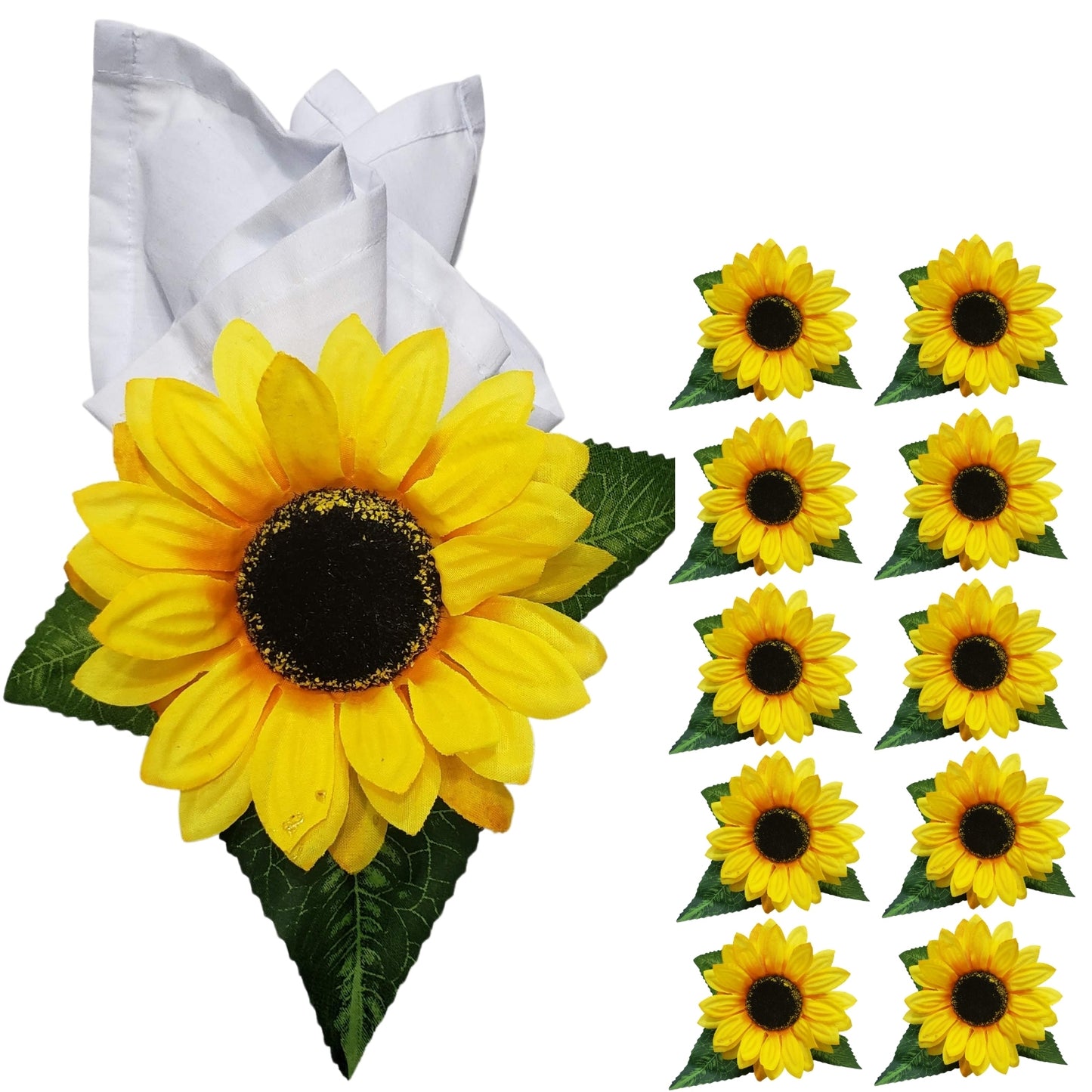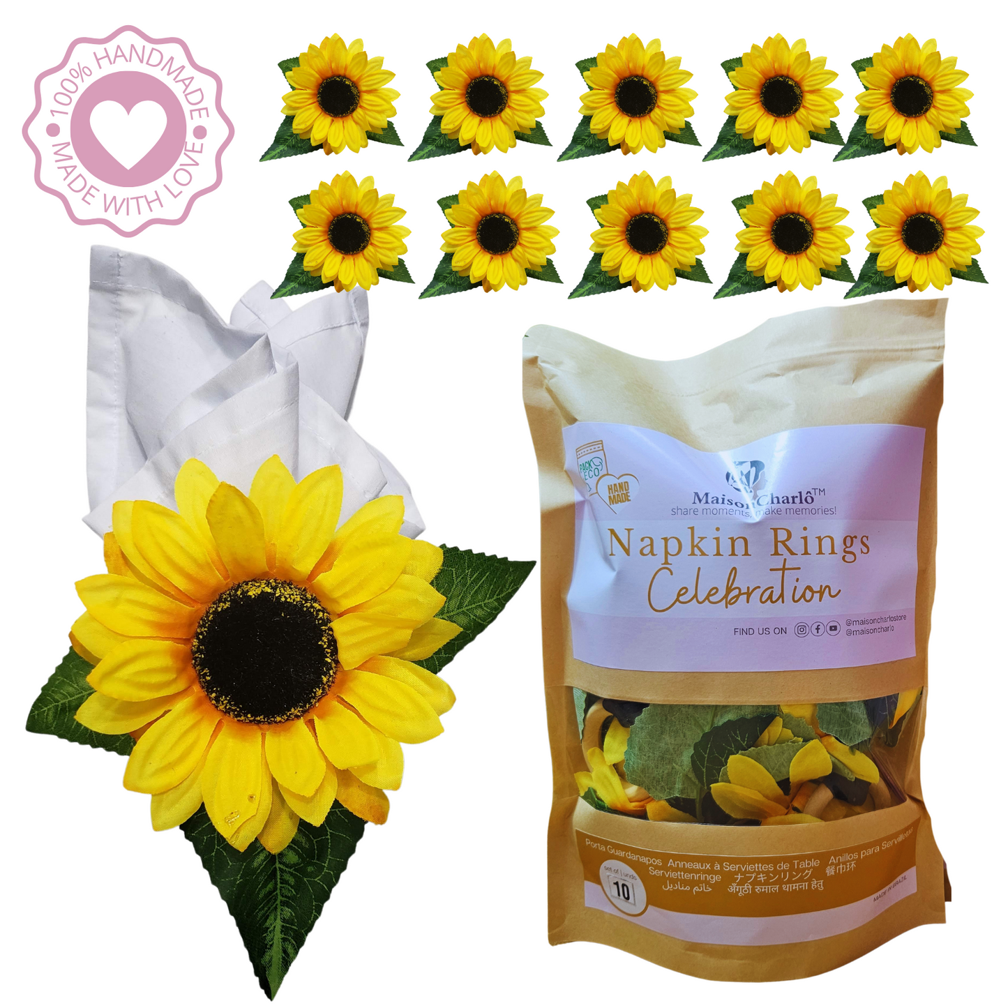 Maison Charlo | Wholesale Set of 10 Sunflower Napkin Rings for party, wedding, shopkeeper, birthday, restaurant