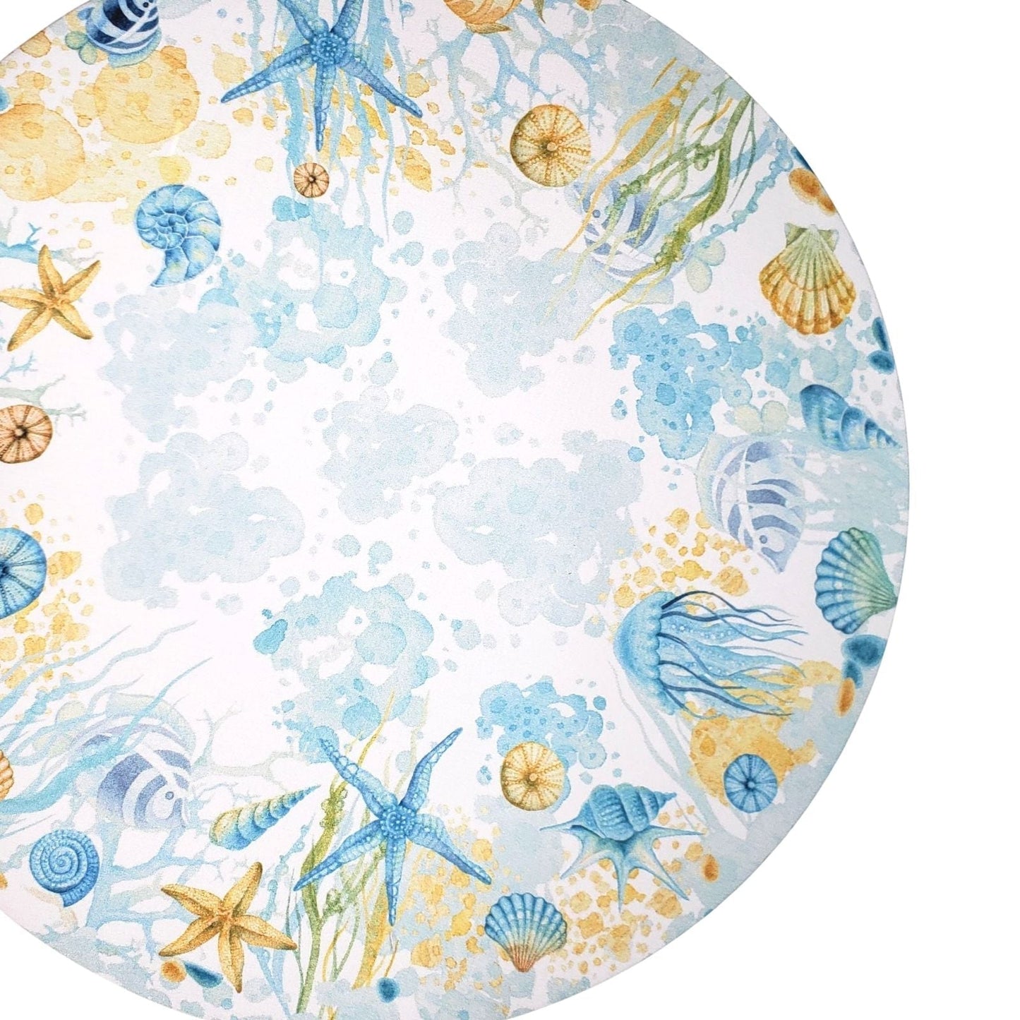 Set of 4 Round Placemats Covers Starfish Blue 14 Dia inch