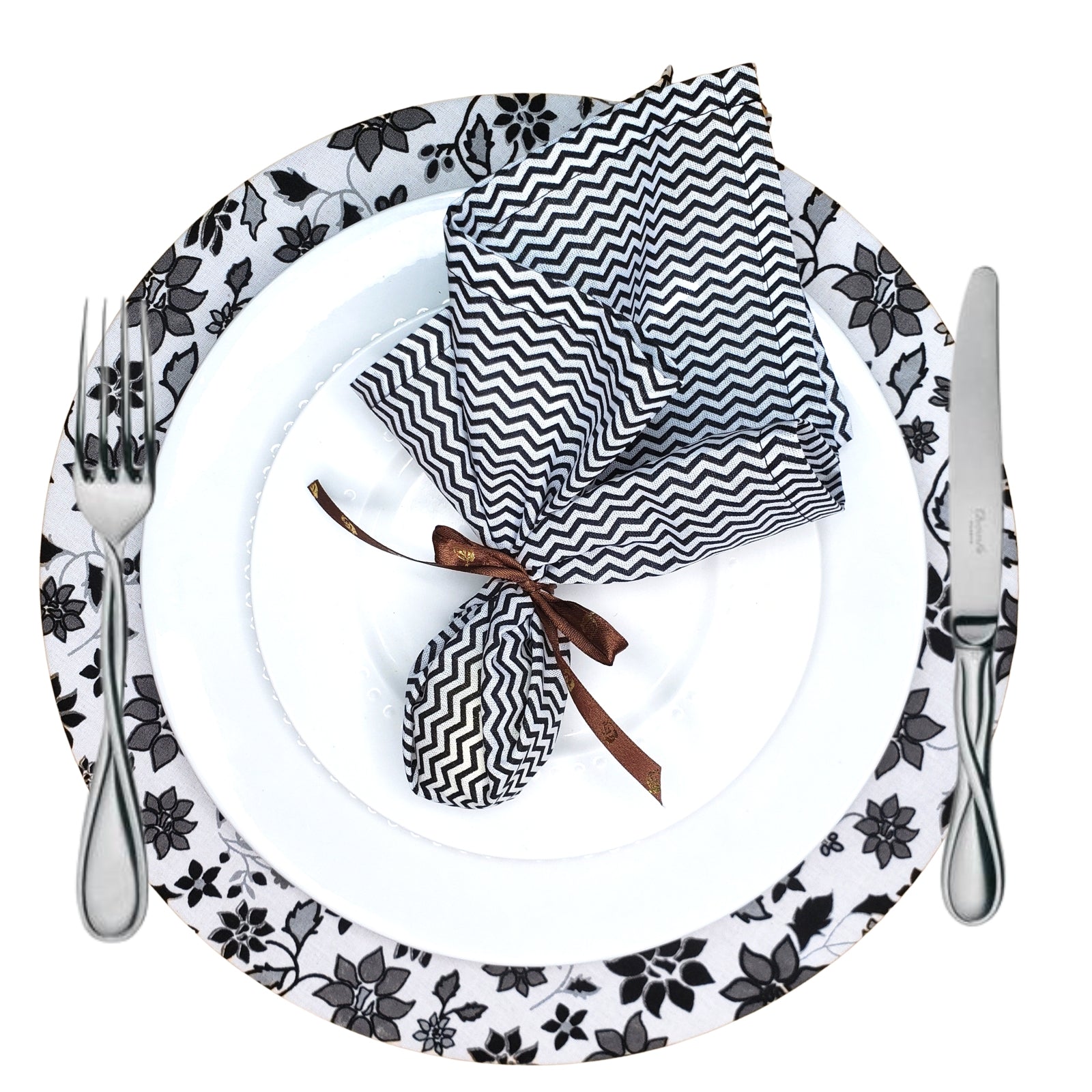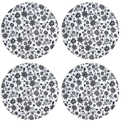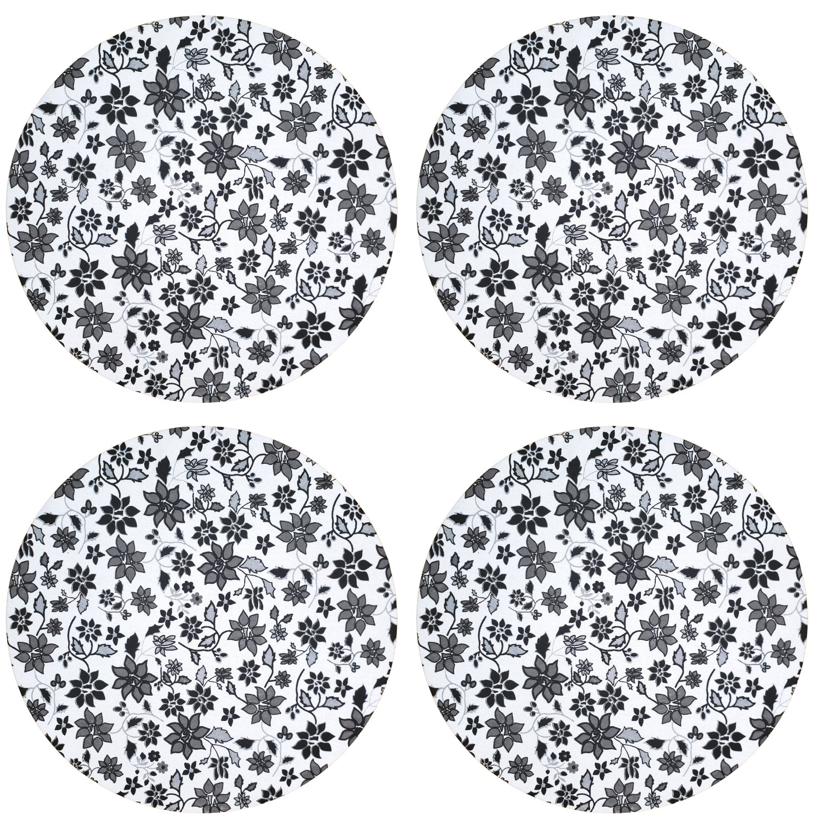 Charlo's Set of 4 Round Placemats Covers 14 Dia inch Floral Black
