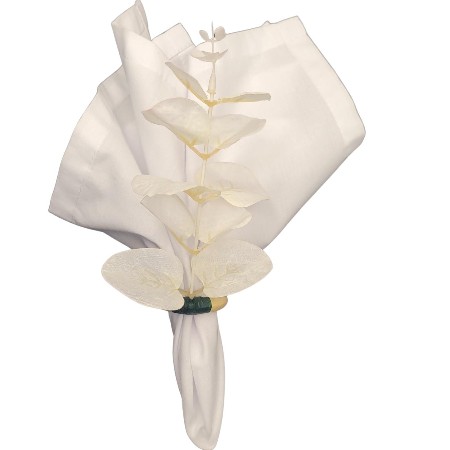 Set of 4 White Leaf Eucalyptus Napkin RingsRustic Napkin Ring, Minimalist Tabledecor, Oriental Tabledeco