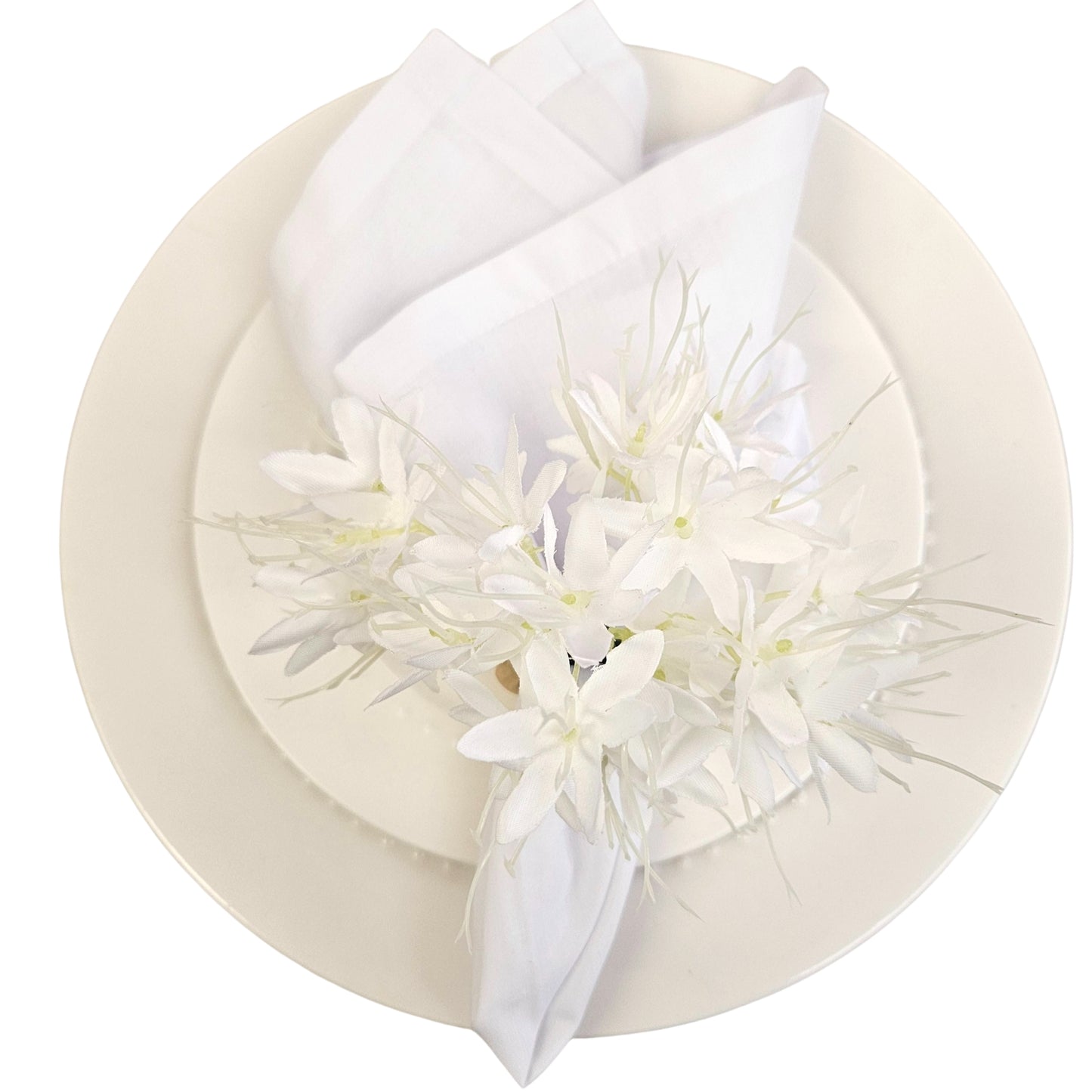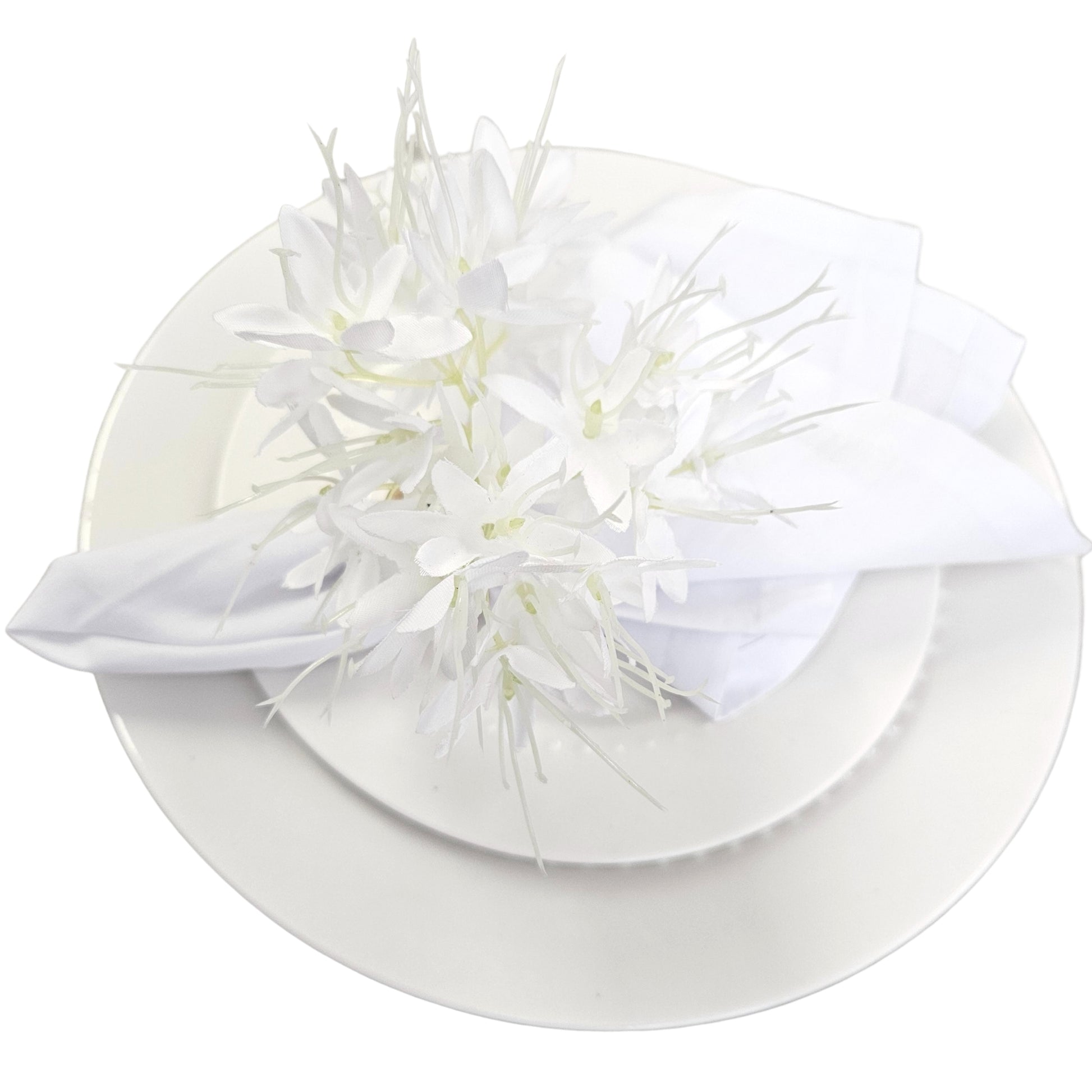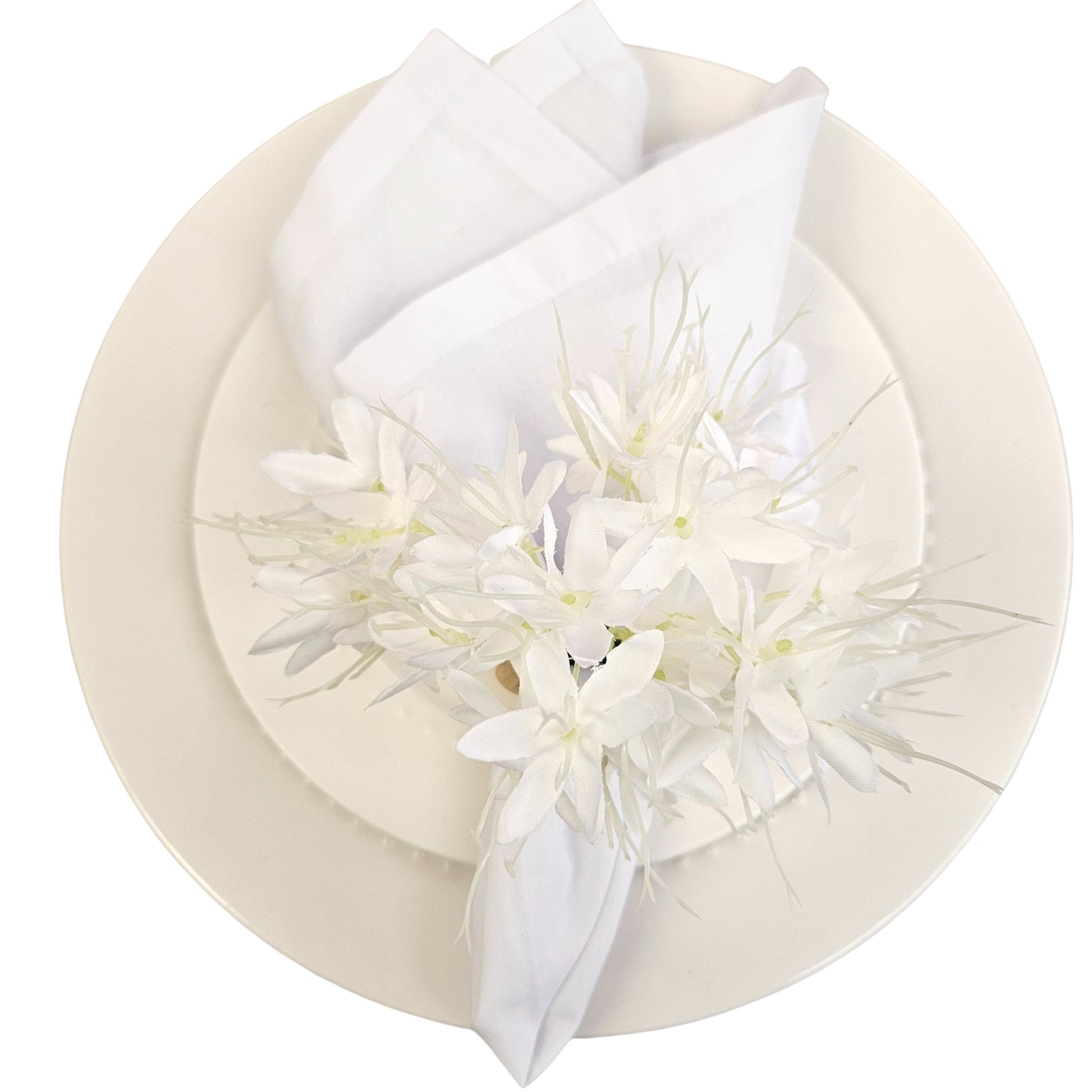 Set of 4 White Mini Lilies Flower Napkin Rings for party, wedding, birthday, celebration