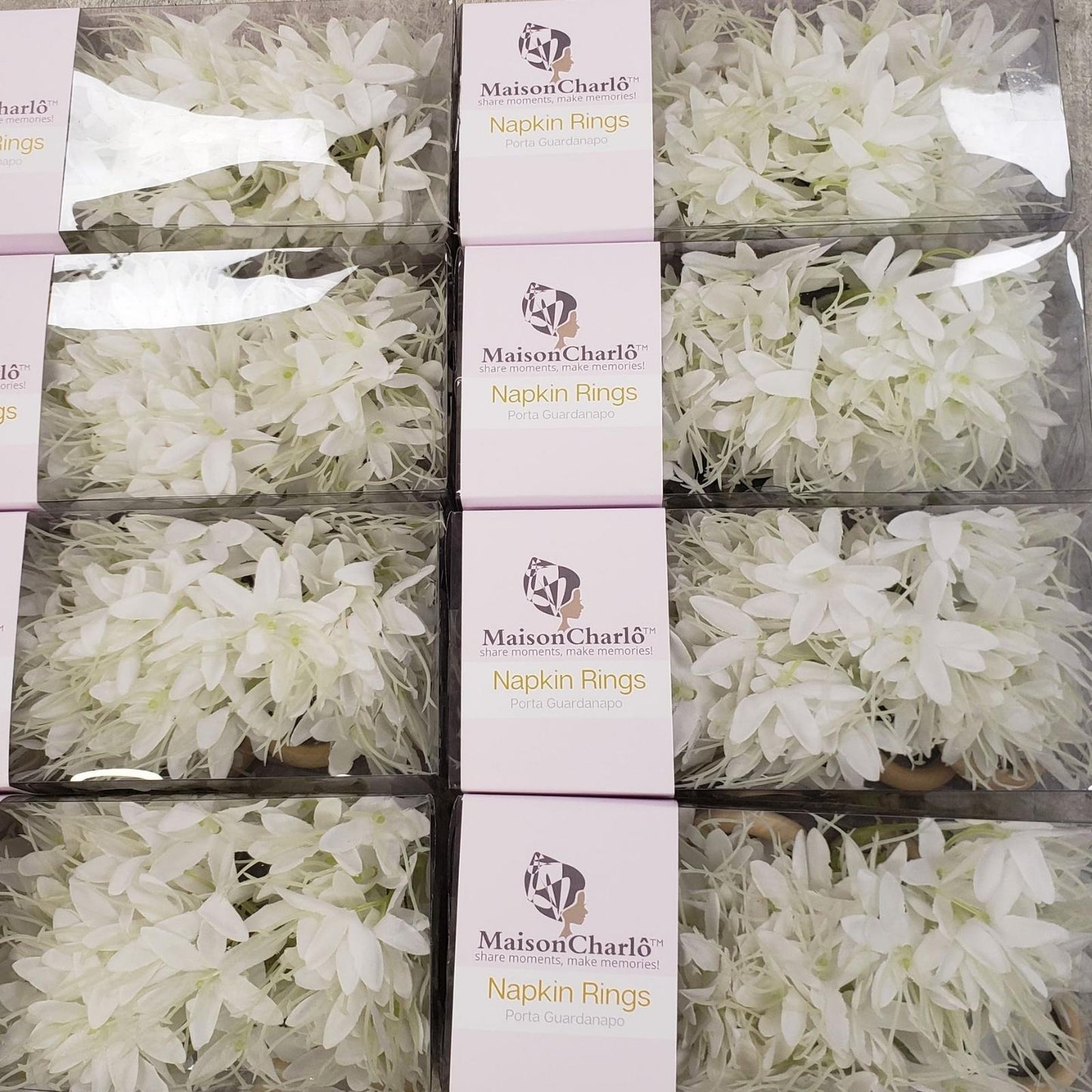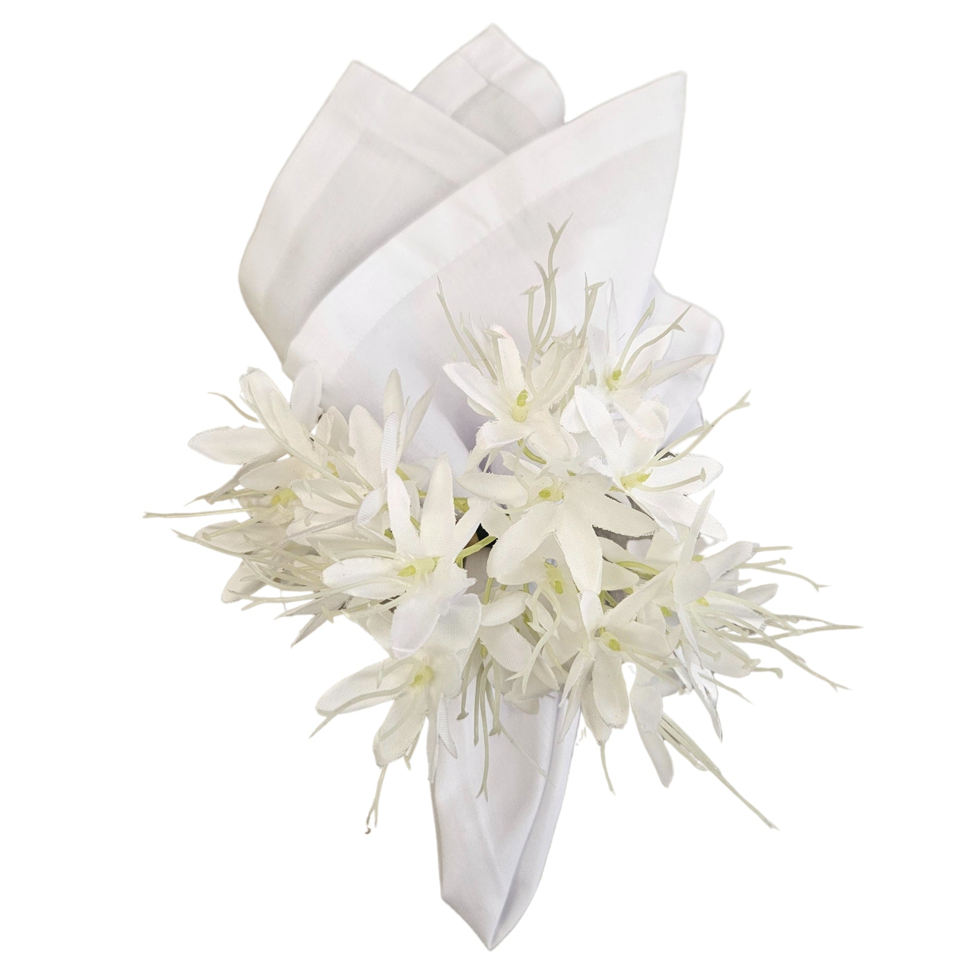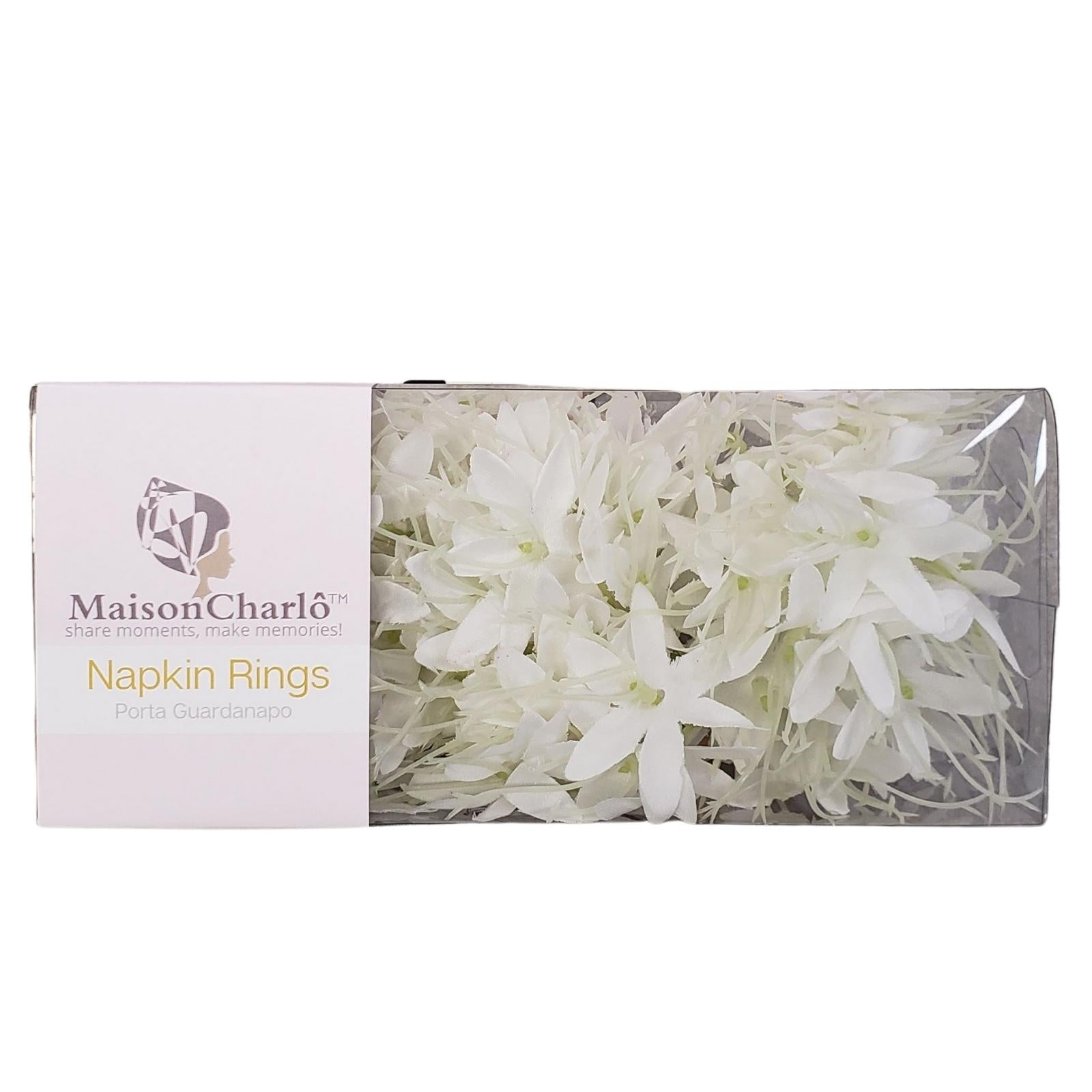 Set of 4 White Mini Lilies Flower Napkin Rings for party, wedding, birthday, celebration