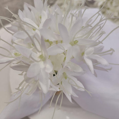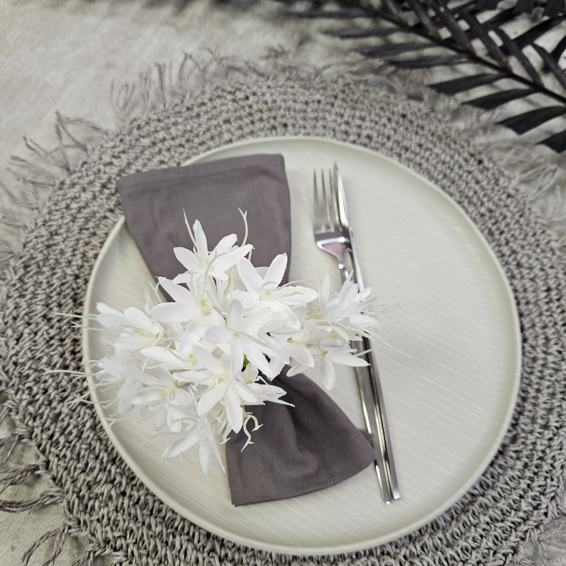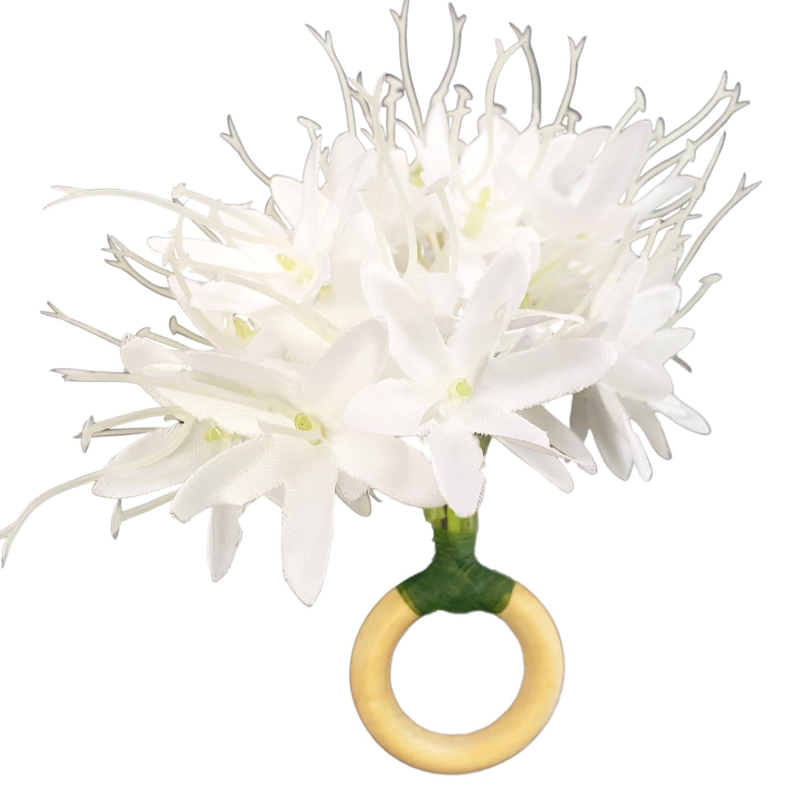 ABOUT THE PRODUCT - Set of 4 White Mini Lilies Flower Napkin Rings, the material is high-quality fabric (Flower) and natural wood ring. If you want to surprise your guests, here's a tip that will brighten up your table and is a real charm at your table.
