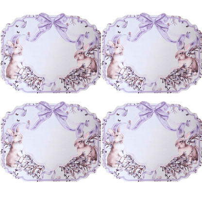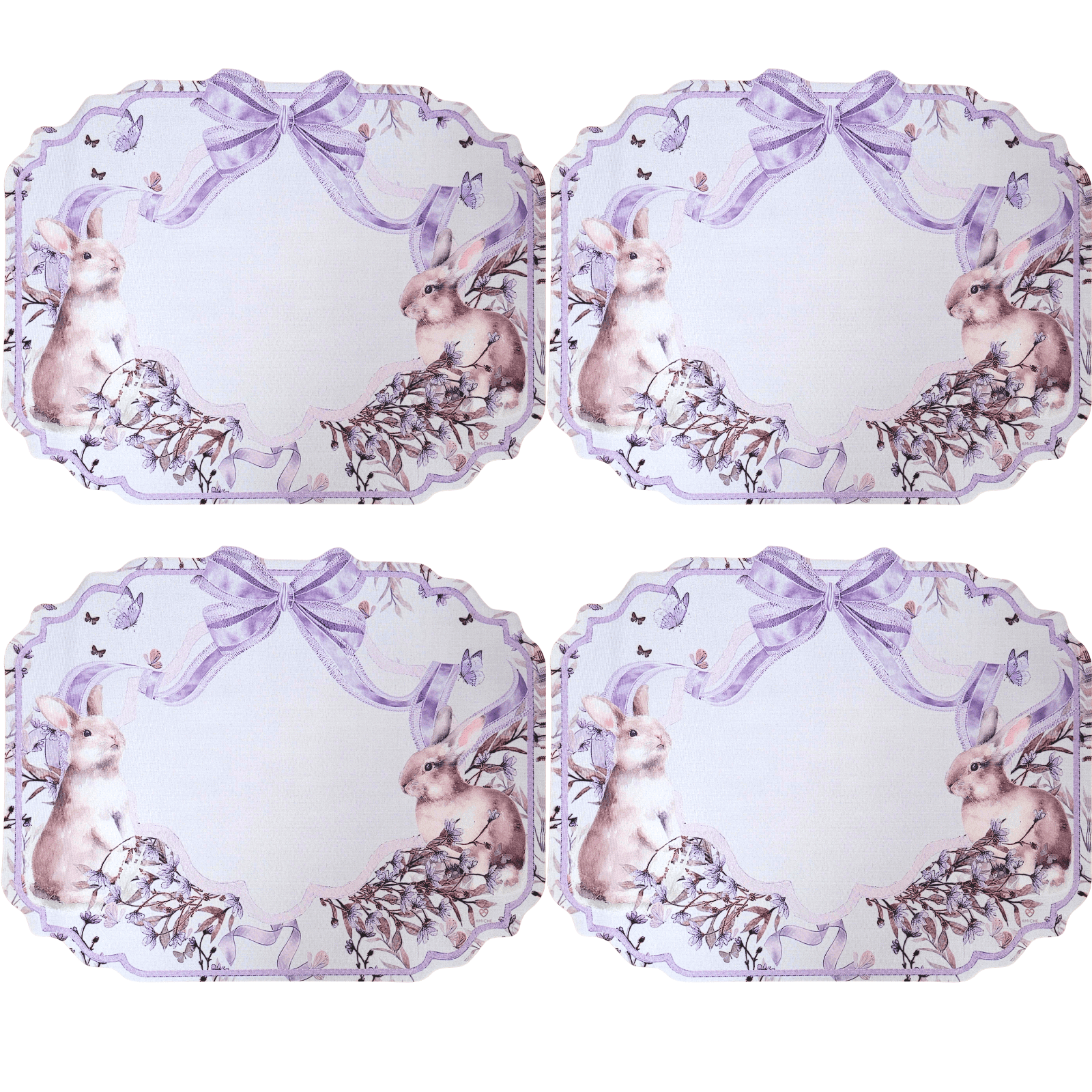 Set 4 Placemats Waterproof Lace Lilac Easter Bunny Gardens Non Slip Easy to Clean placemat, Reusable Placemats, Dining Table, TableSetting