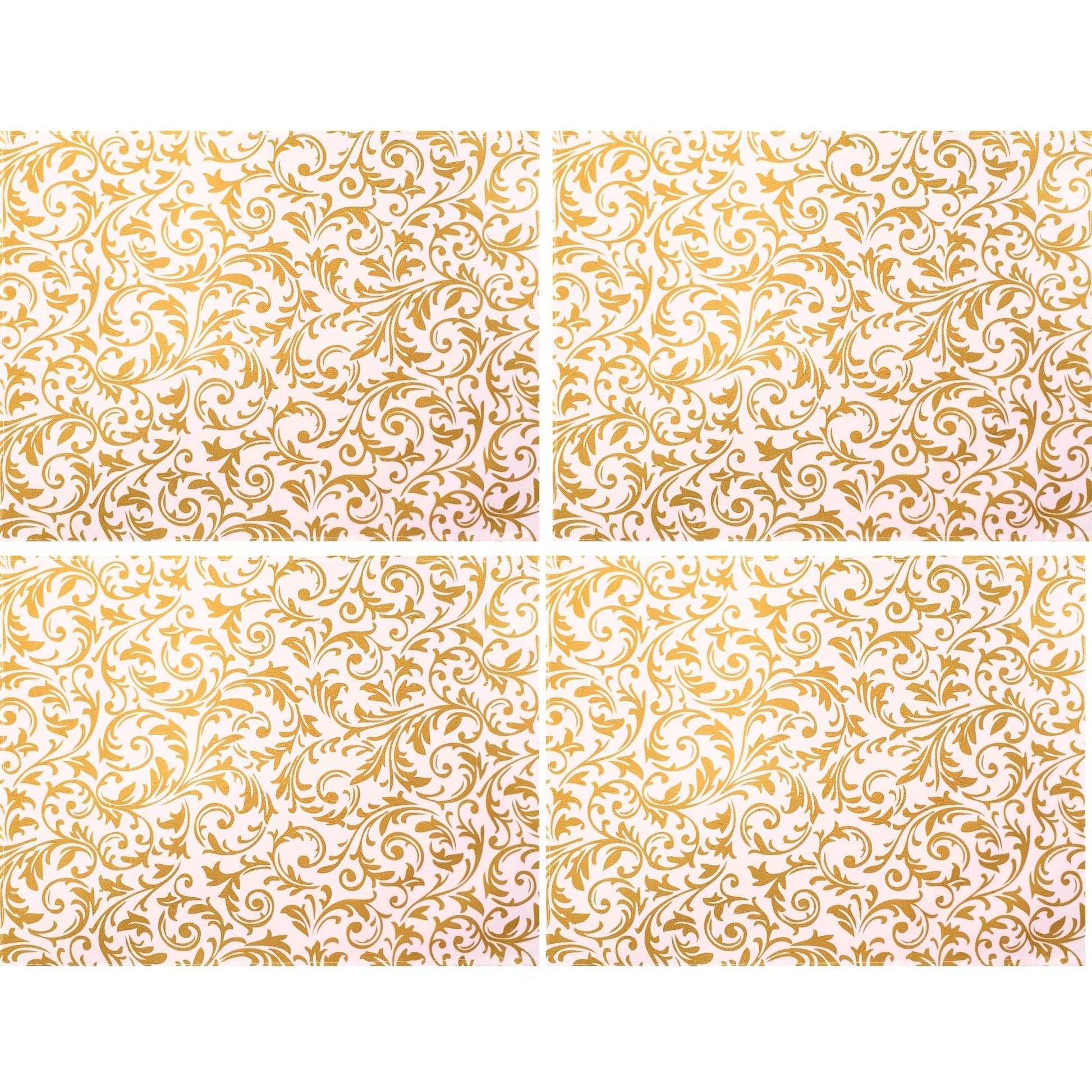 Set of 4 Placemats Golden Arabesque Christmas Cloth Waterproof 17" by 13"