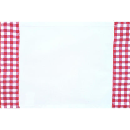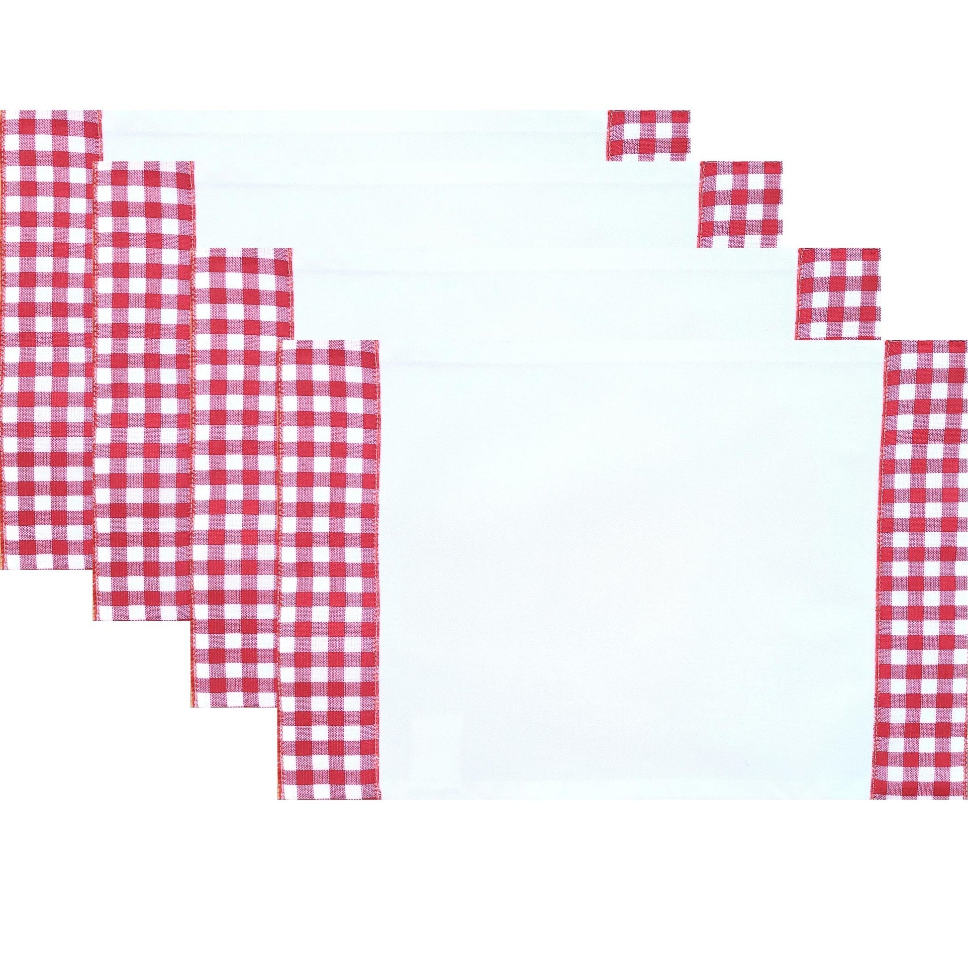 Set of 4 Placemats White Cotton Twill with Red Plaid Embroidery 18"by12"
