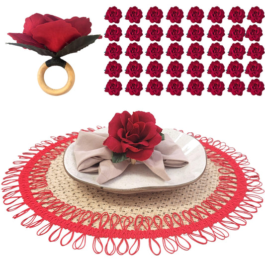 Maison Charlô | Wholesale Set of 40 Wholesale Red Colombiana Rose Flower Rosebud Napkin Rings Ecofriendly Pack