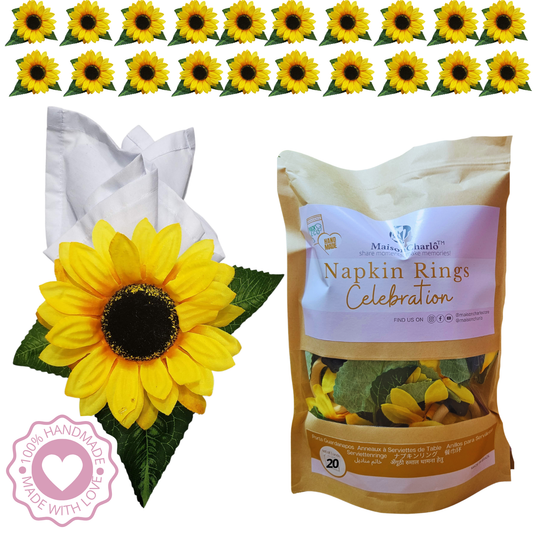 Maison Charlo | Wholesale Set of 20 Sunflower Napkin Rings for party, wedding, shopkeeper, birthday, restaurant