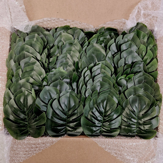 Charlo's Pack 20 OR 40 Monstera Artificial Plants Palm Leaves Tropical Imitation for Home Kitchen Party Flowers Arrangement Decorations