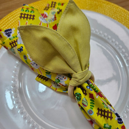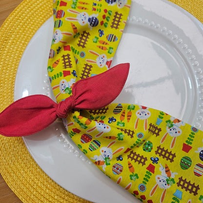 Charlo's Easter Yellow Cotton Cloth Napkins Easter Bunny Delight Joyful 15 x15