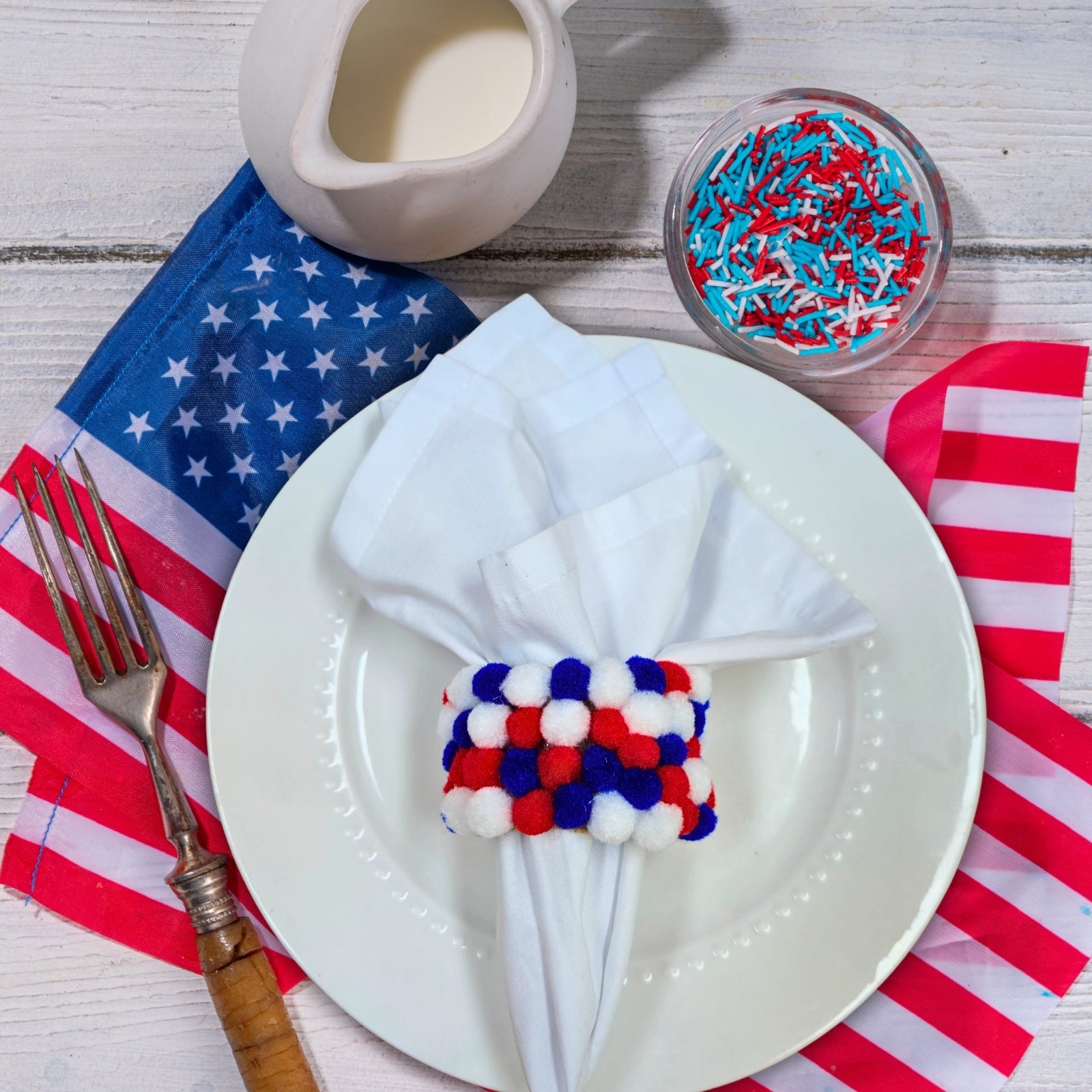 Celebrate Patriotic Holidays with Charlo's Patriot 4th July Pom Pom Napkin Rings