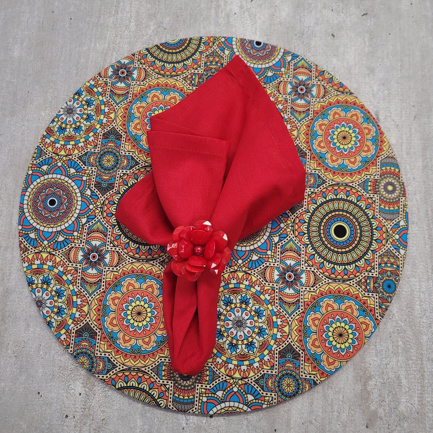 ABOUT THE PRODUCT -Set of 4 round placemats with Mandala theme is perfect for those who want versatility, practicality and best of all it is considered a sustainable and reuse product. Another important factor is a product that takes up little space in the kitchen.