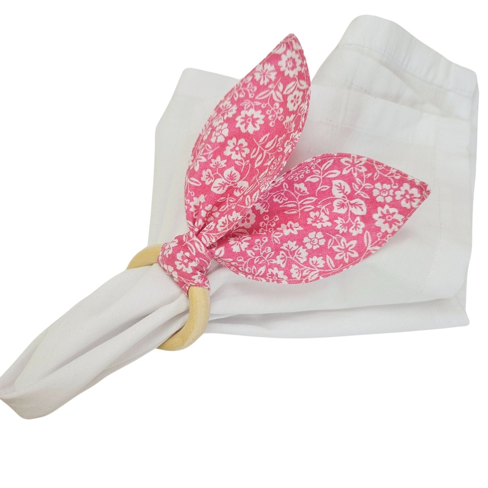Maison Charlo | Easter Set of 4 Floral Pink White Bunny Ears Napkin Rings | Dining Table Decor