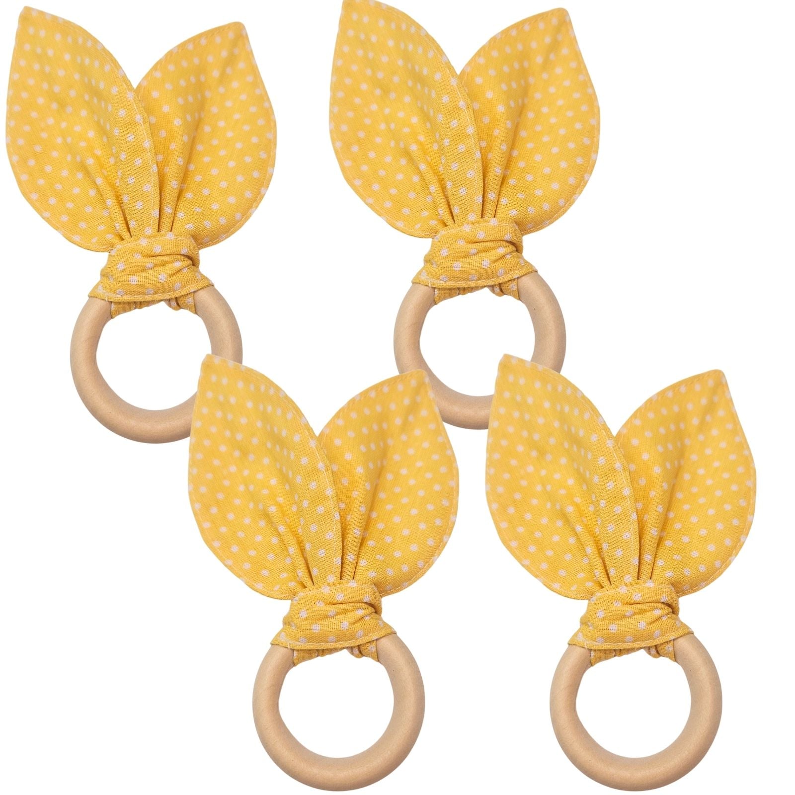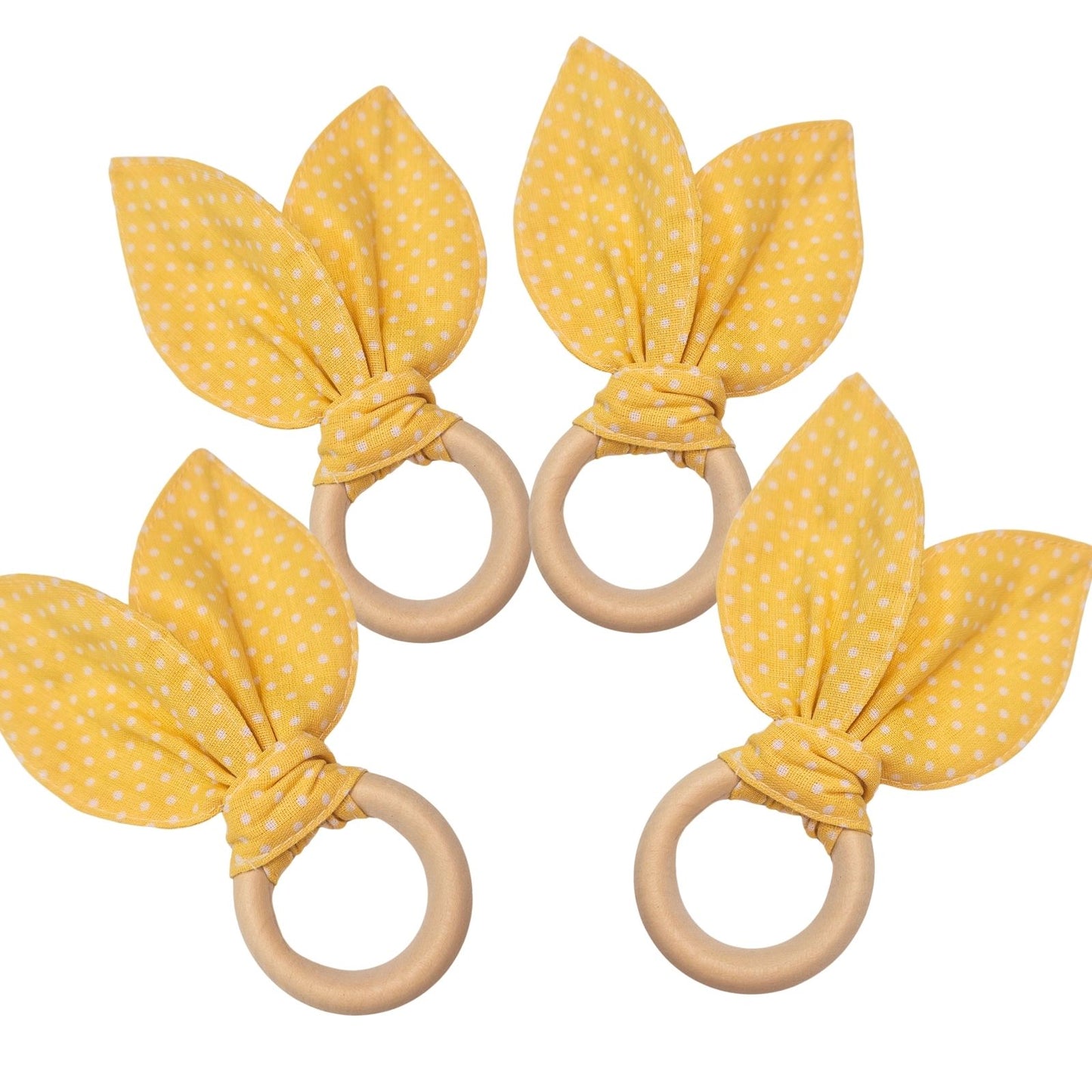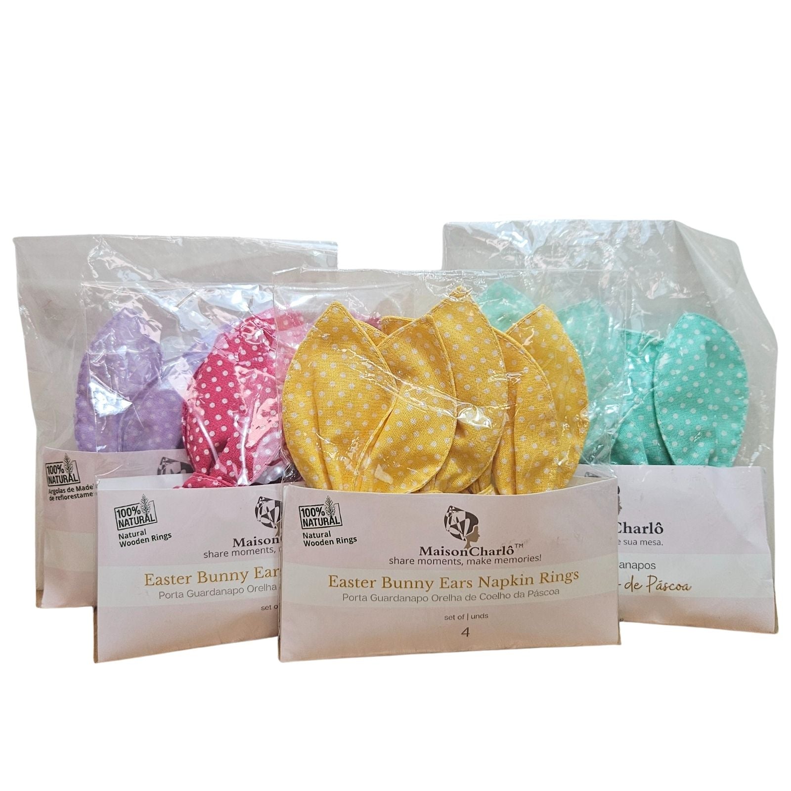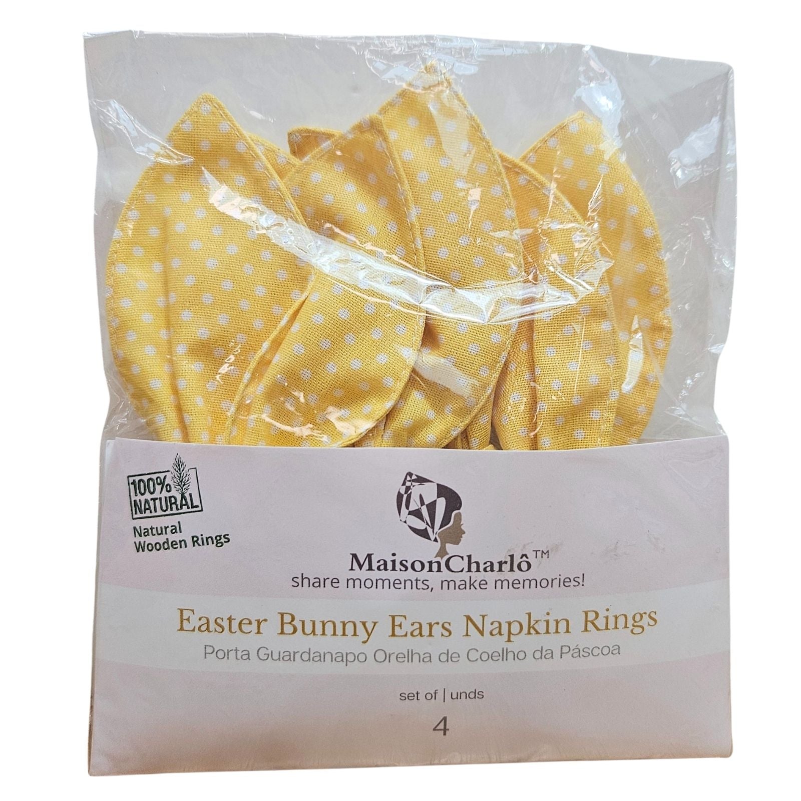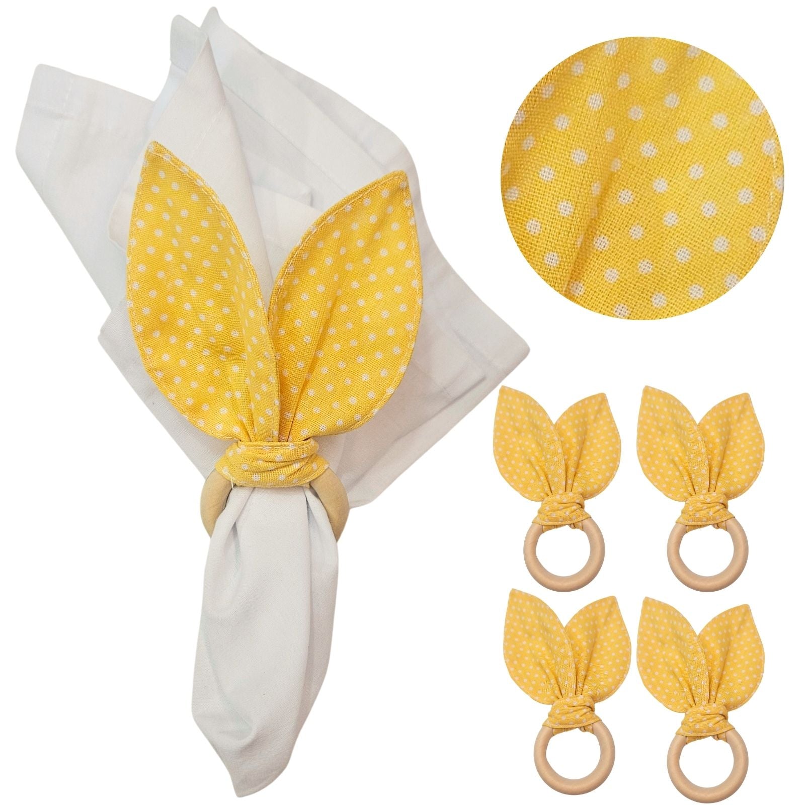Maison Charlo | Easter Set of 4 Polka Dot Yellow Bunny Ears Napkin Rings | Dining Table Decor