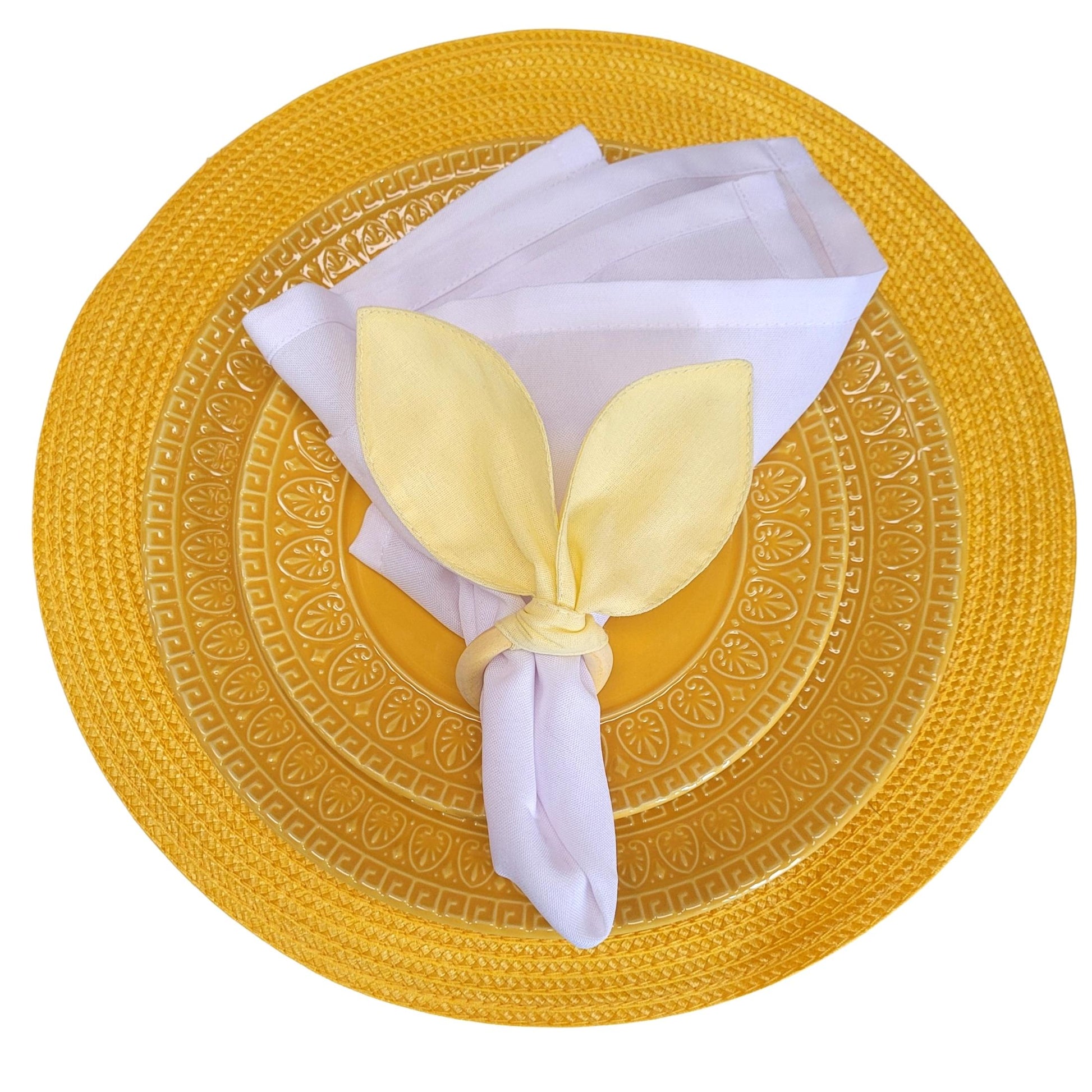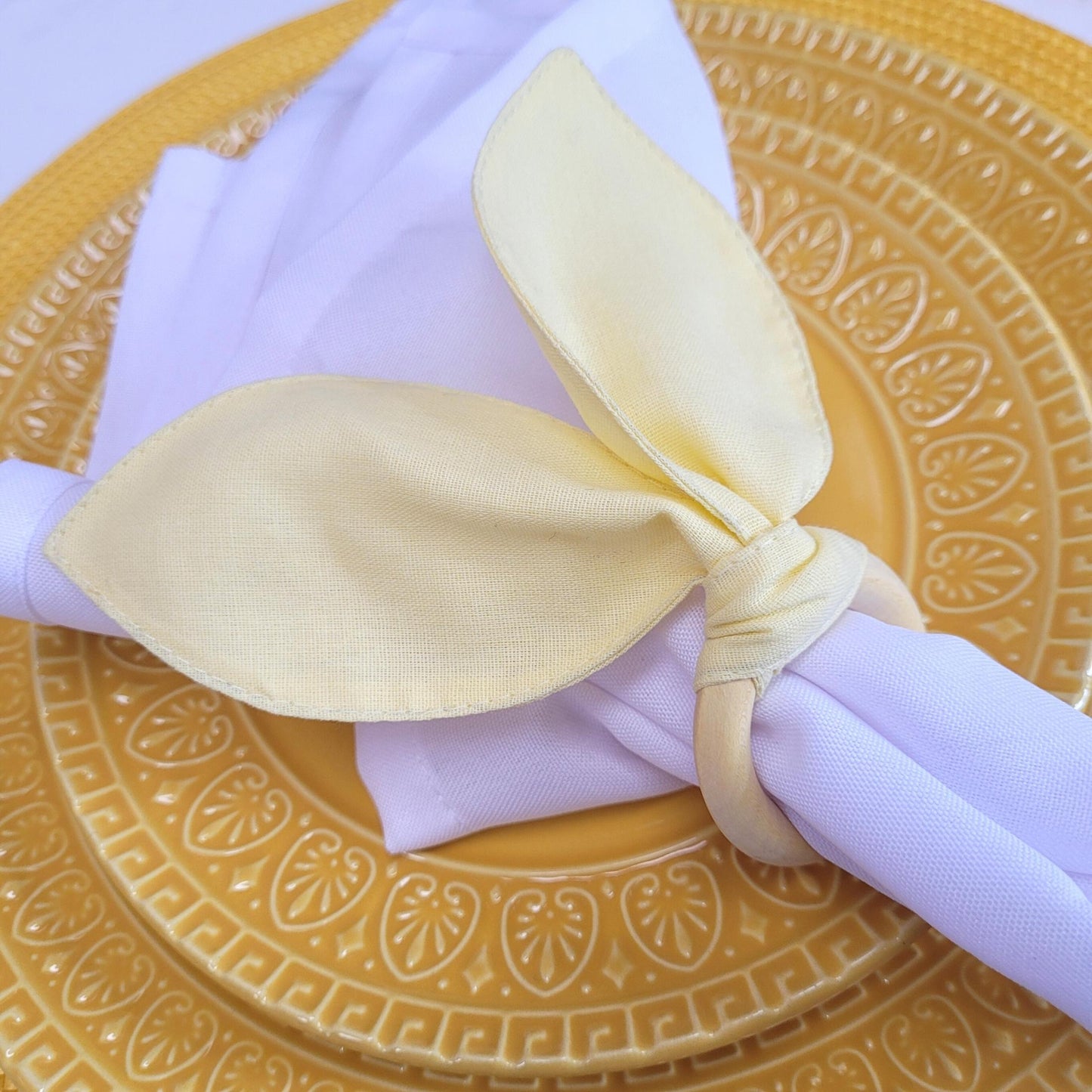 Maison Charlo | Easter Set of 4 Yellow Orange Bunny Ears Napkin Rings | Dining Table Decor