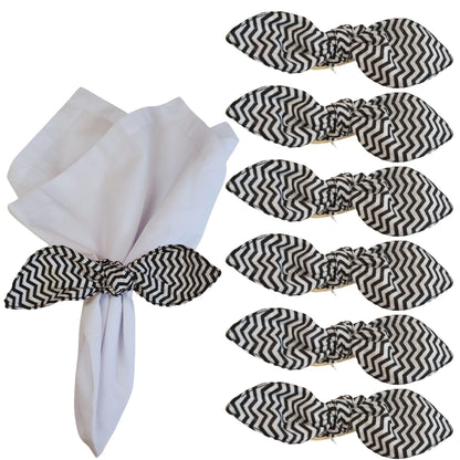Maison Charlo | Set of 6 Ecofriendly Chevron Black Cloth Ties Napkin Rings, Christmas, Easter, Valentine's, Mother's Day
