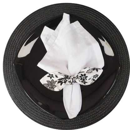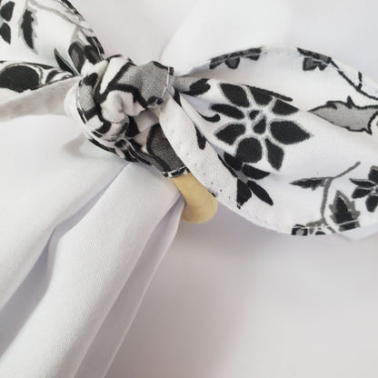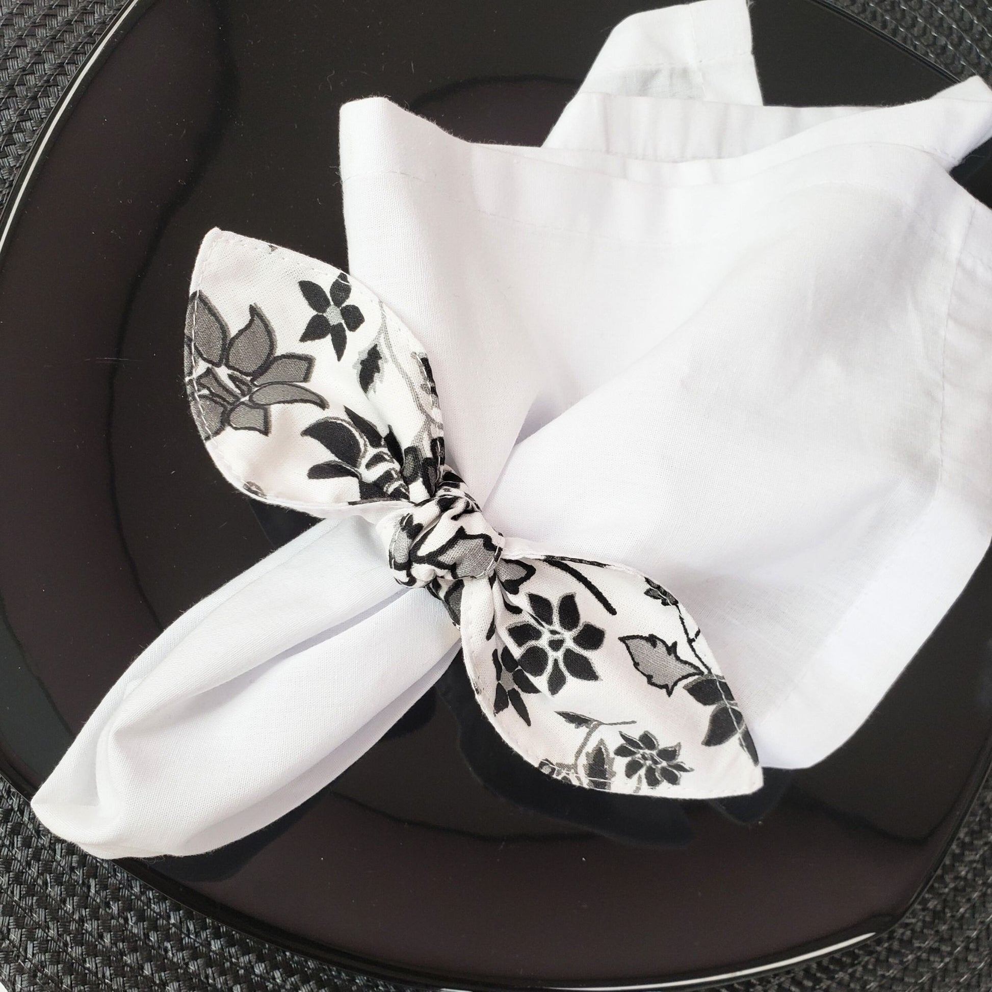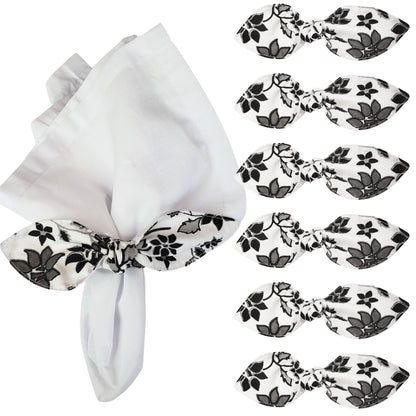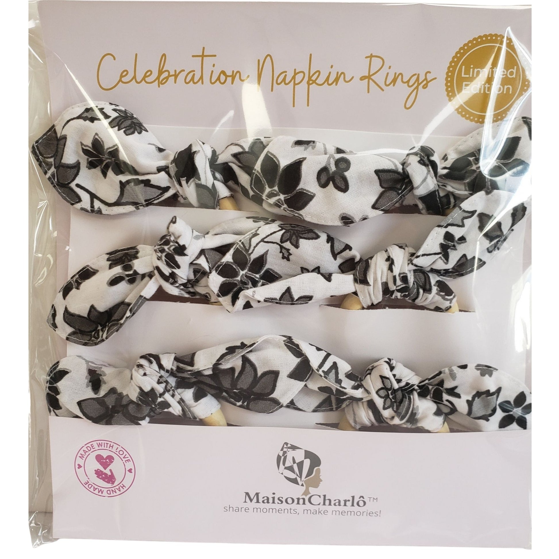 Maison Charlo |Set of 6 Ecofriendly Floral Black Cloth Ties Napkin Rings, Christmas, Easter, Valentine's, Mother's Day