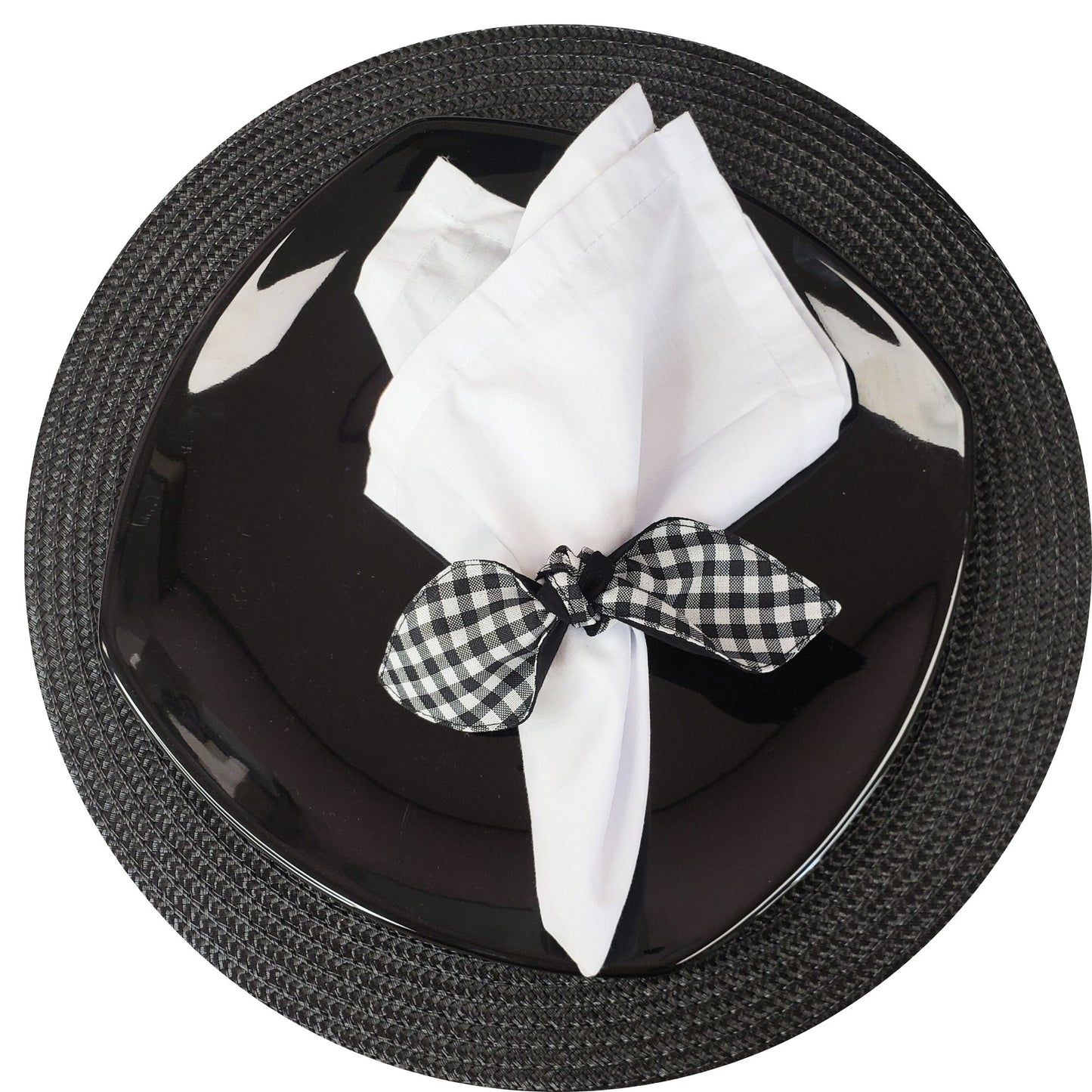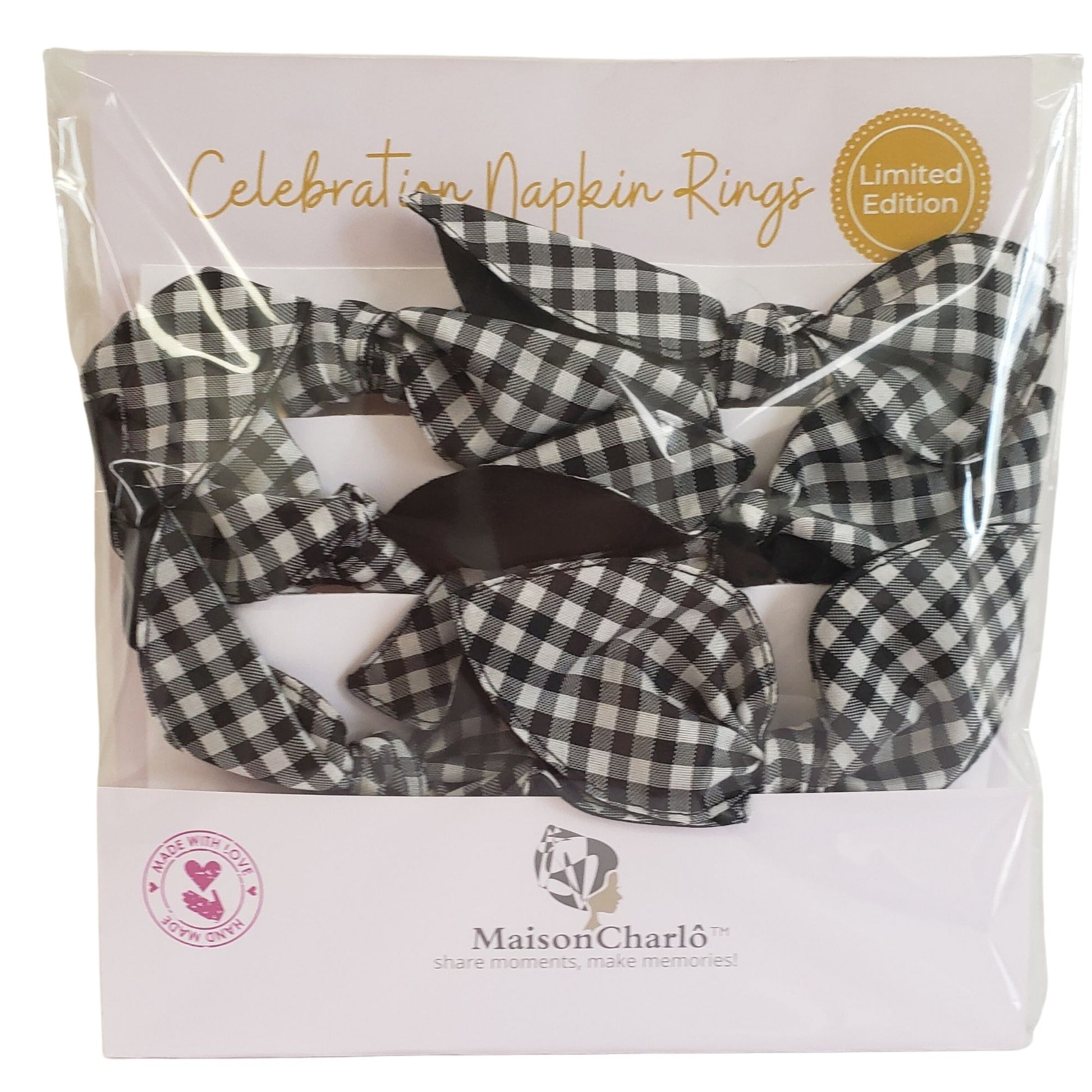 Maison Charlo | Set of 6 Ecofriendly Black Small Plaid Cloth Little Ties Napkin Rings, Christmas, Easter, Valentine's, Mother's Day