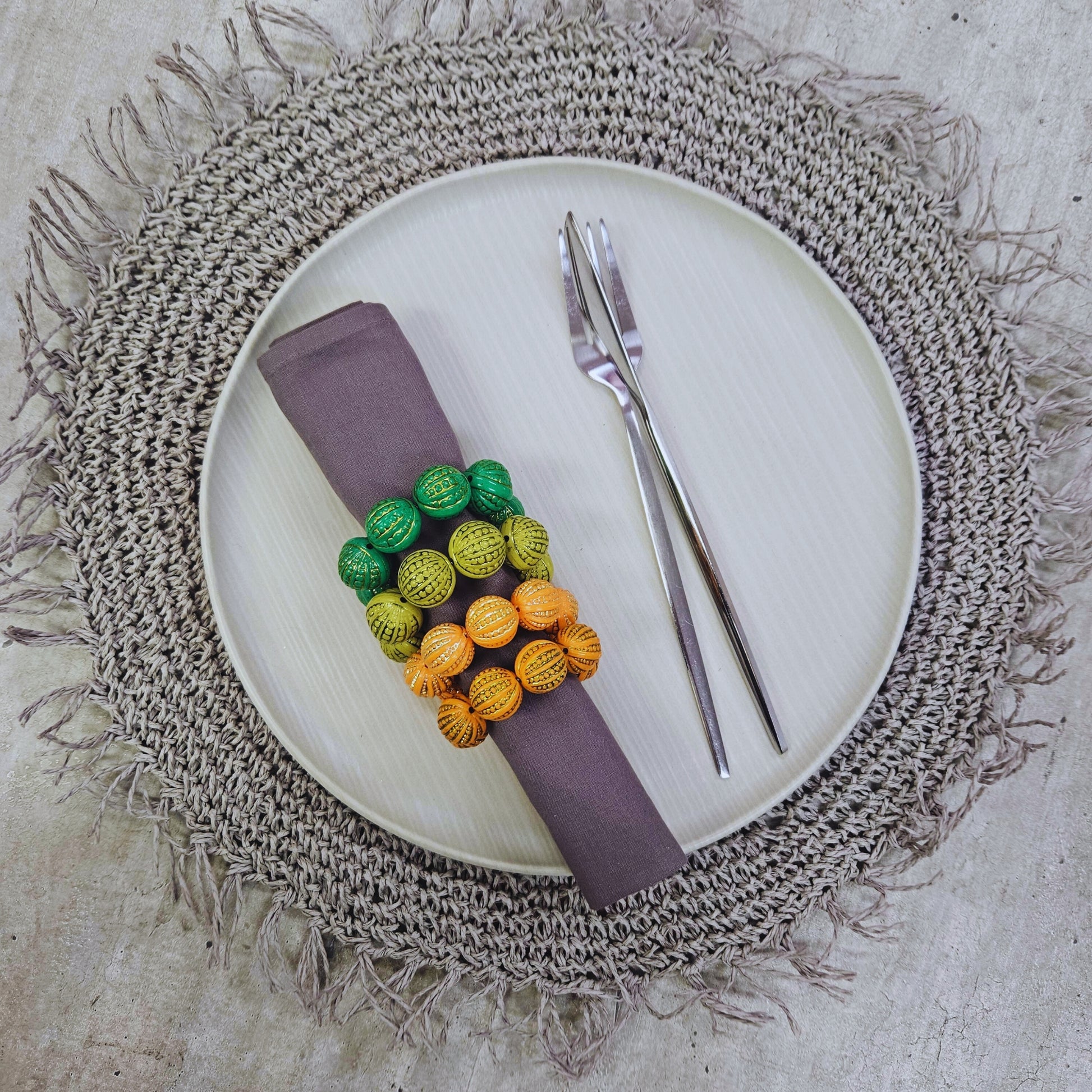 Maison Charlô | Set 4 Green Shine Beaded Napkin Rings | Rustic Napkin Ring | Handmade