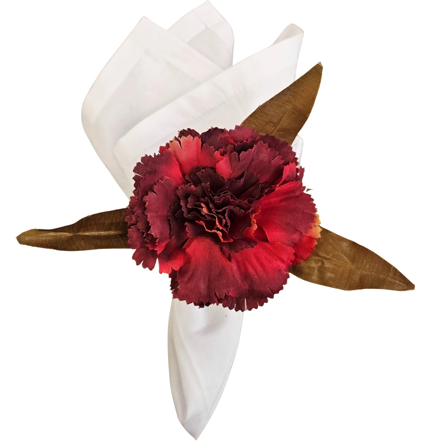Maison Charlô | Set of 4 Red Marsala Carnation Flower Napkin Rings for events, wedding, party, birthday