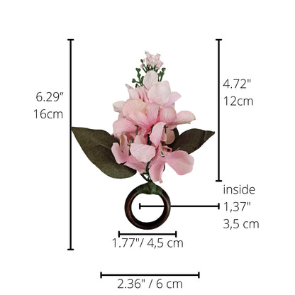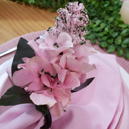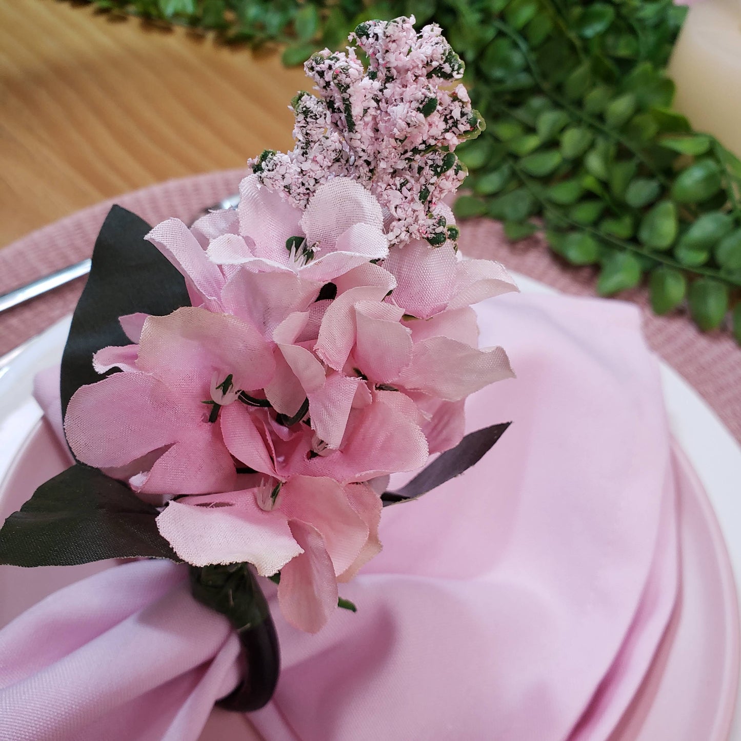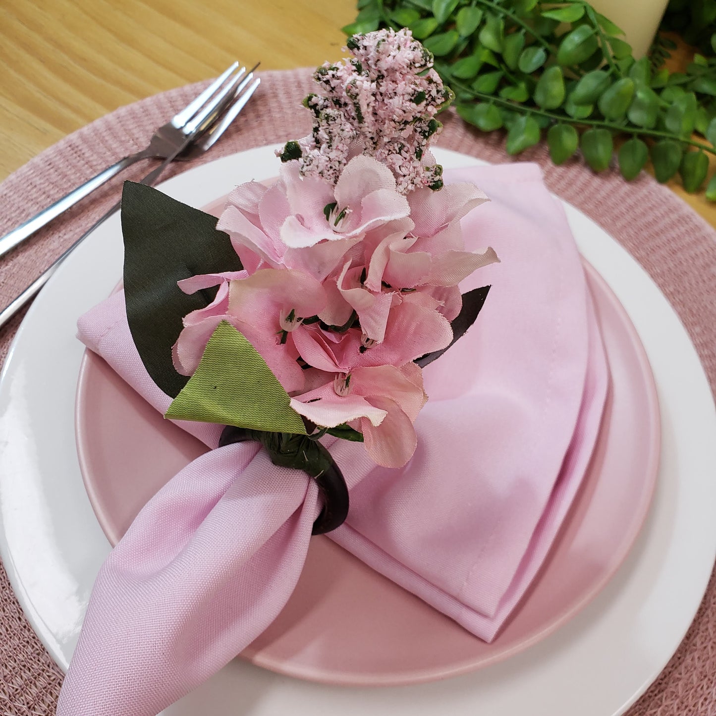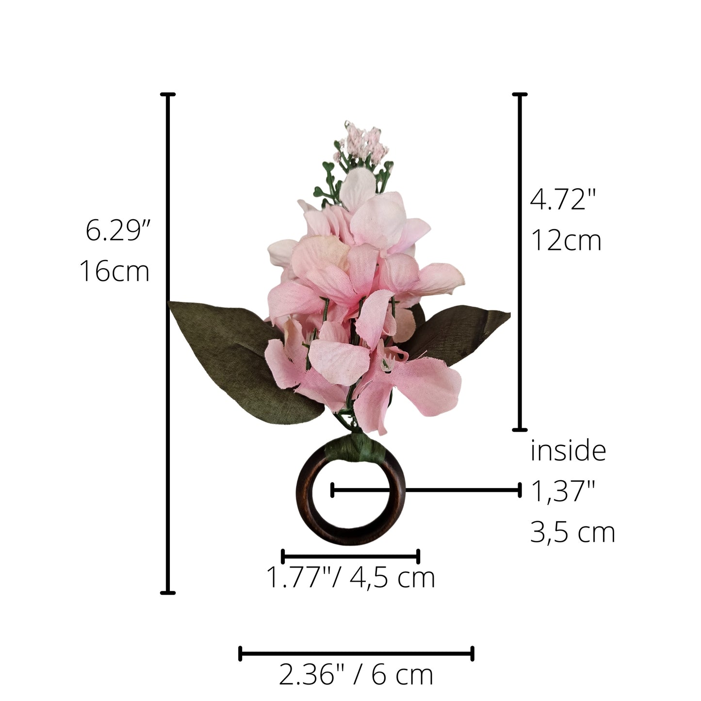 Set of 4 Rose - Lion's Mouth Napkin Rings, the material is high fabric and wood ring. With this napkin rings you can use it on several occasions. Whether you're dining al fresco or setting the dining room table for a dinner party, you'll bring the fresh feeling of the outdoors to your table with these handcrafted napkin rings.