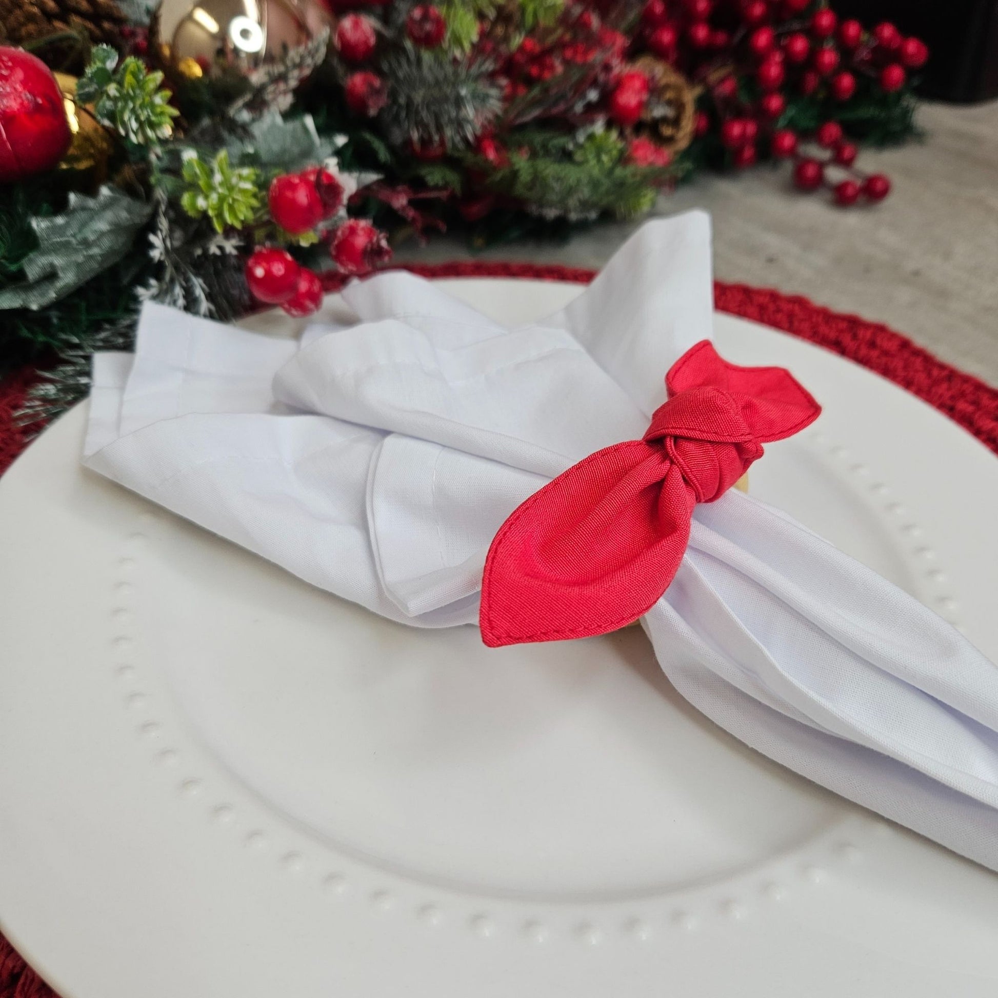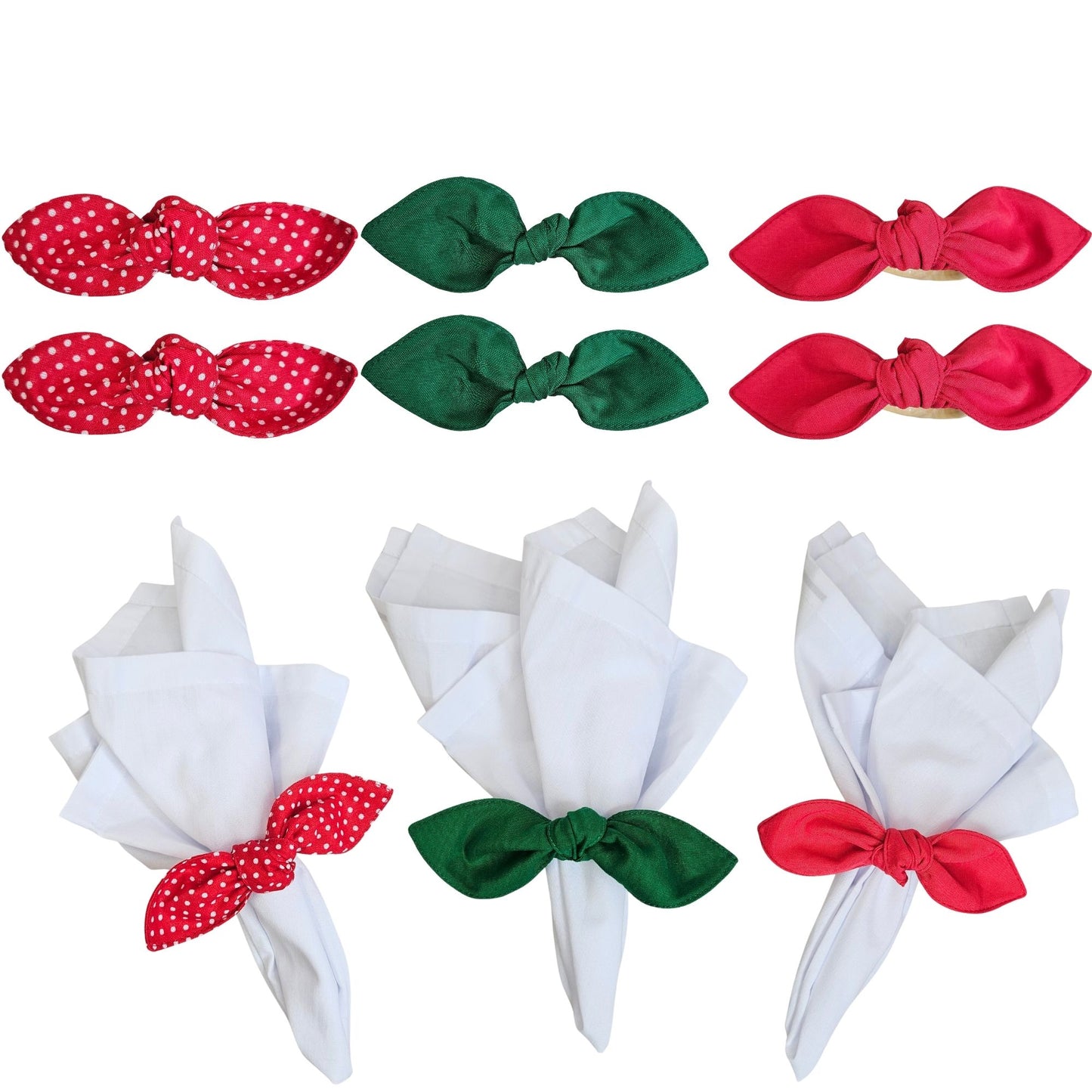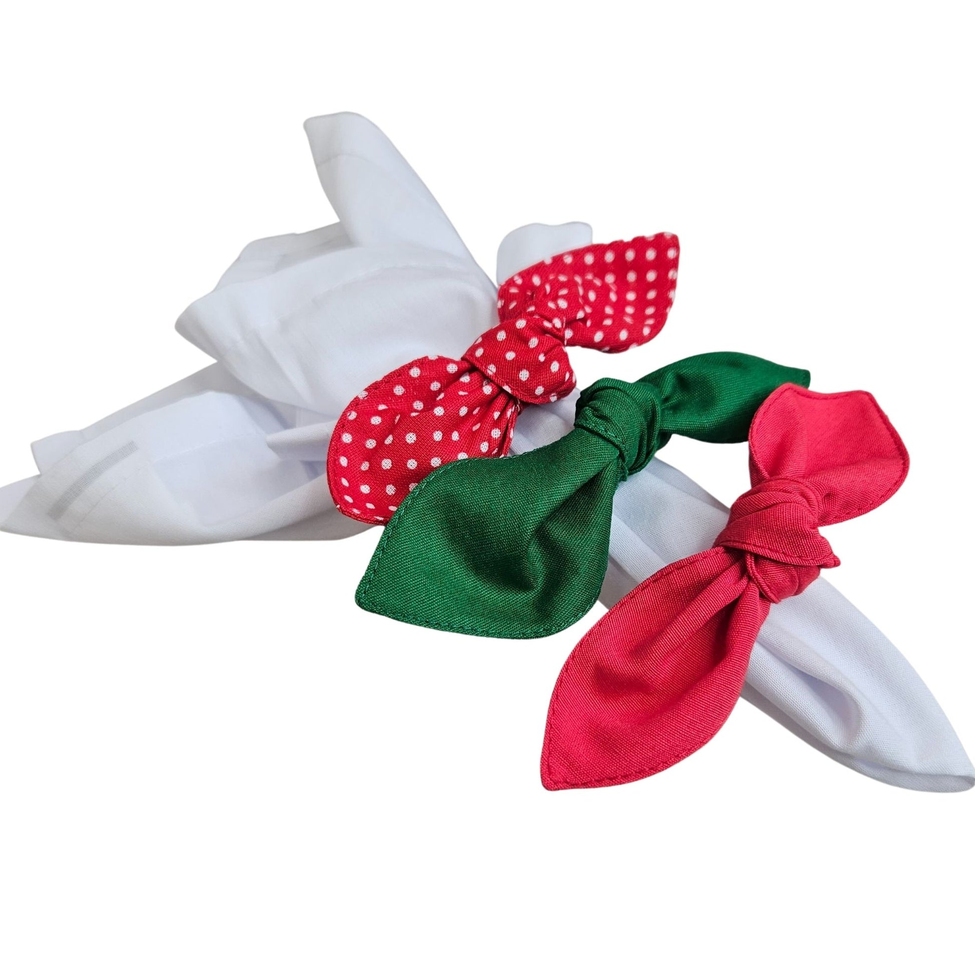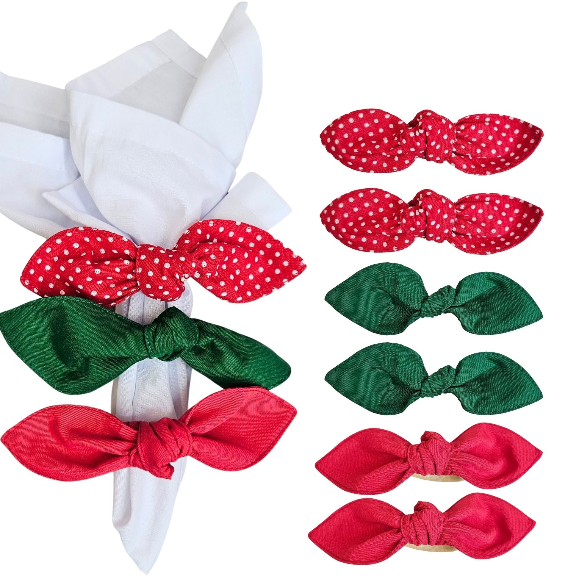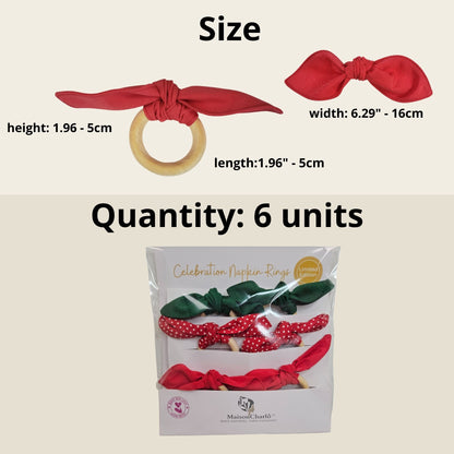 Maison Charlo | Set of 6 Ecofriendly Trio Green Red Dot Polka Ties Napkin Rings, Christmas, Easter, Valentine's, Mother's Day