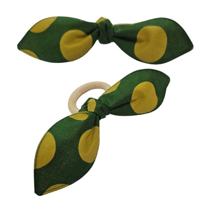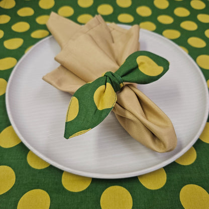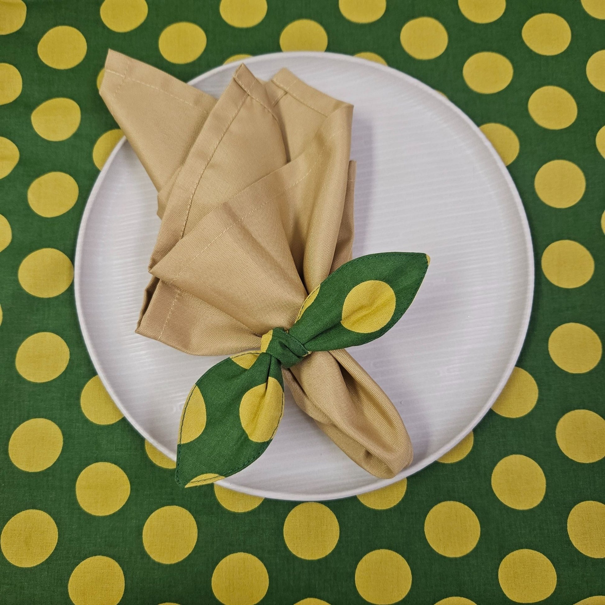 Maison Charlo | Table Runner & Ties Napkin Rings Kits Green & Gold Dot Polka for Christmas, Easter, Valentine's, Mother's Day