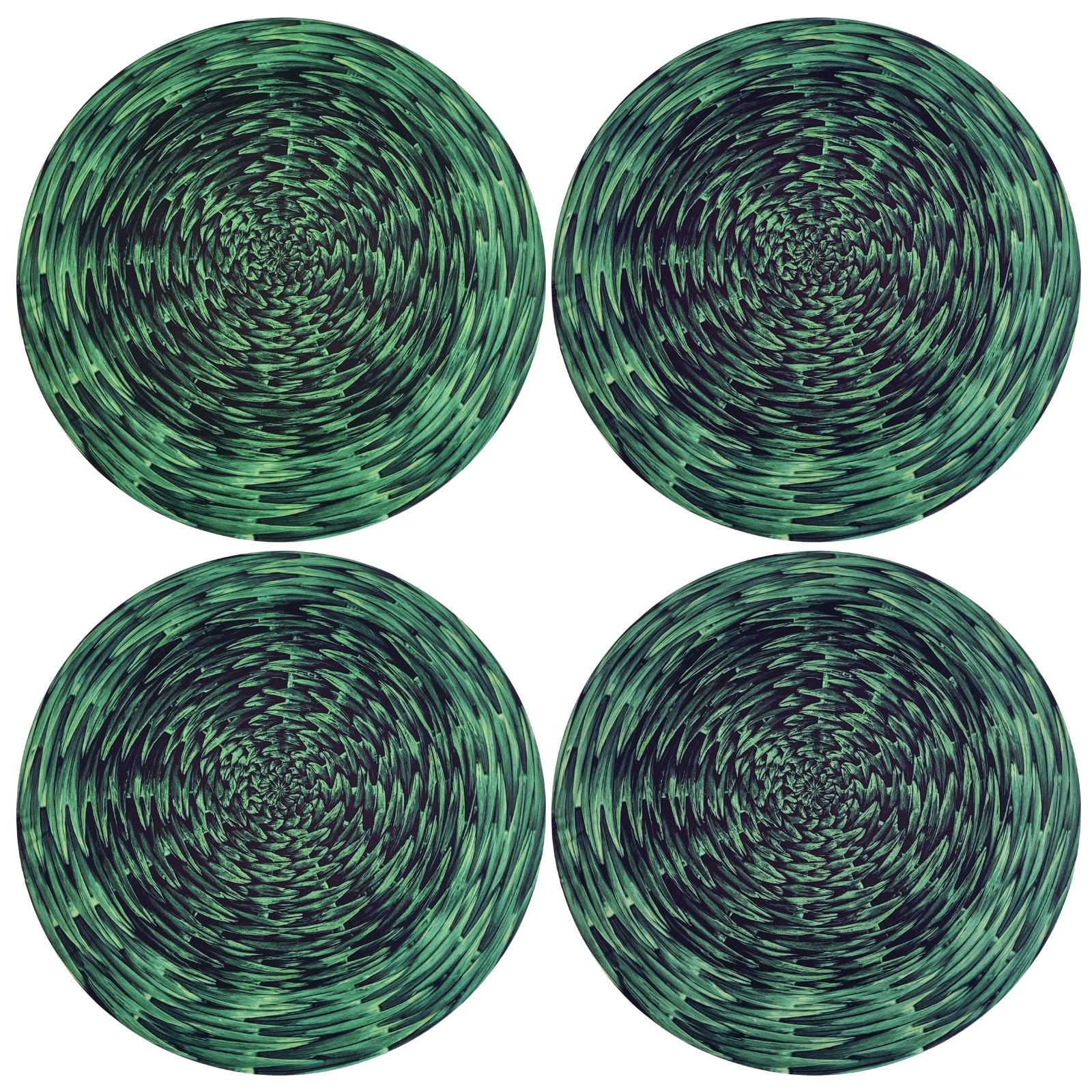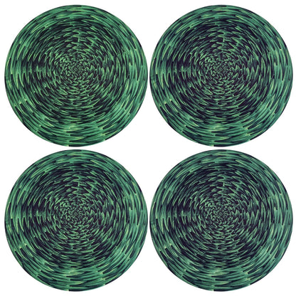 Set of 4 Round Placemats Covers Braided Green 14 Dia inch