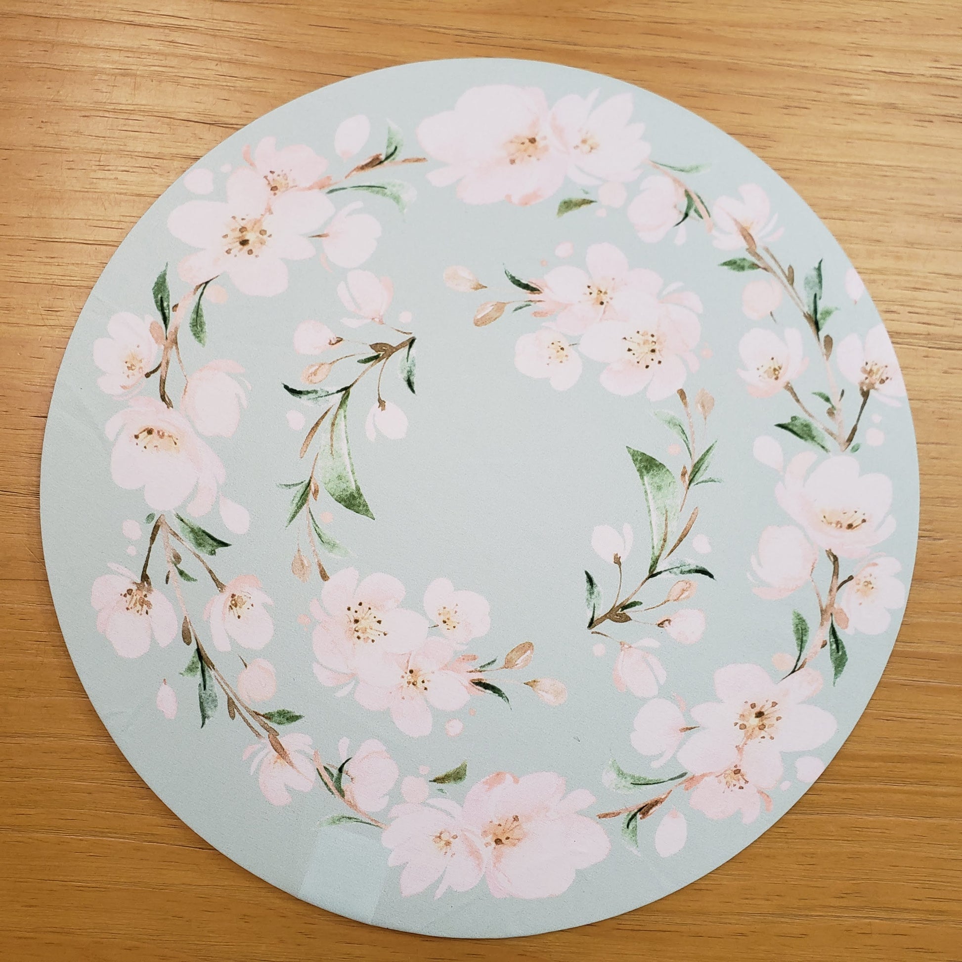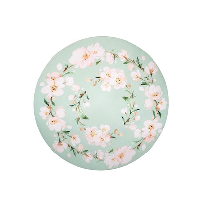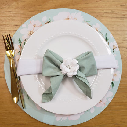 Set of 4 Round Placemats Covers 14 Dia inch Green Water Floral
