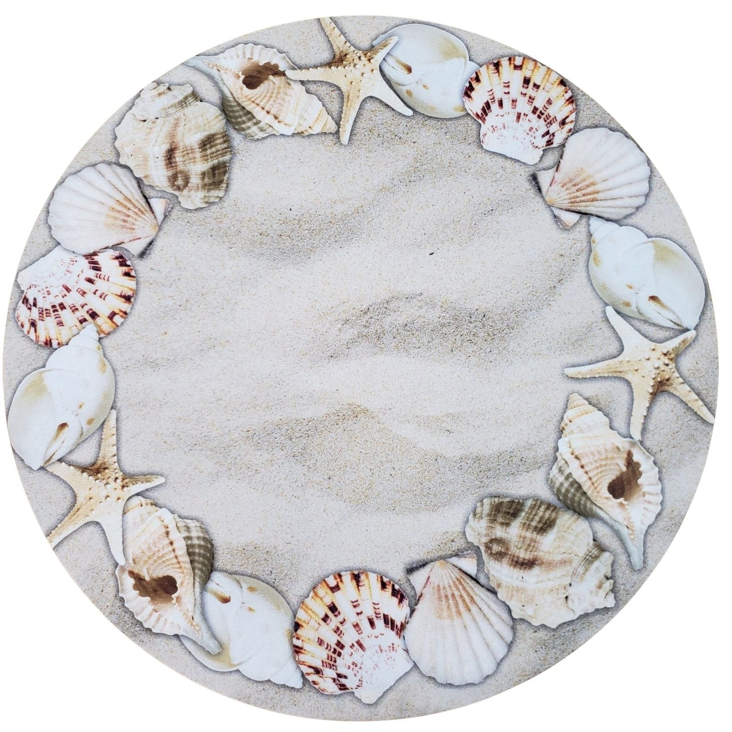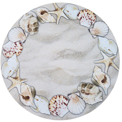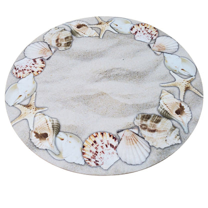 Set of 4 Round Placemats Covers Ring Beige Sea shells 14 Dia inch