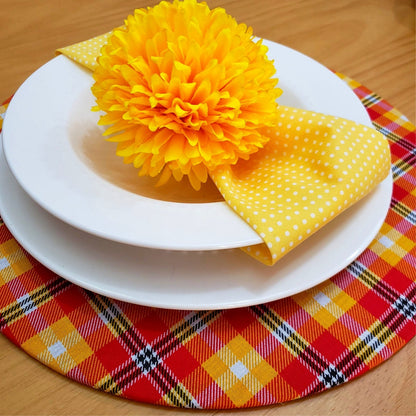 Charlo's Set of 4 Round Placemats Covers 14 Dia inch Xadrez Plaid Sun of Morning