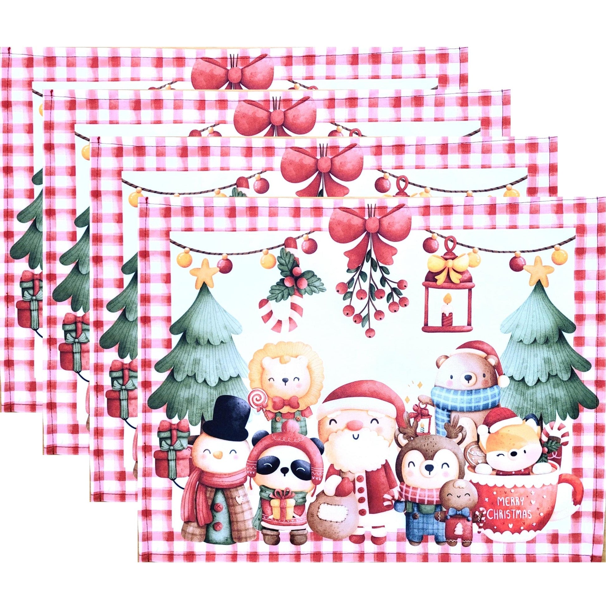 Set of 4 Placemats Red Lively Christmas Party Cloth Waterproof 17" by 13"