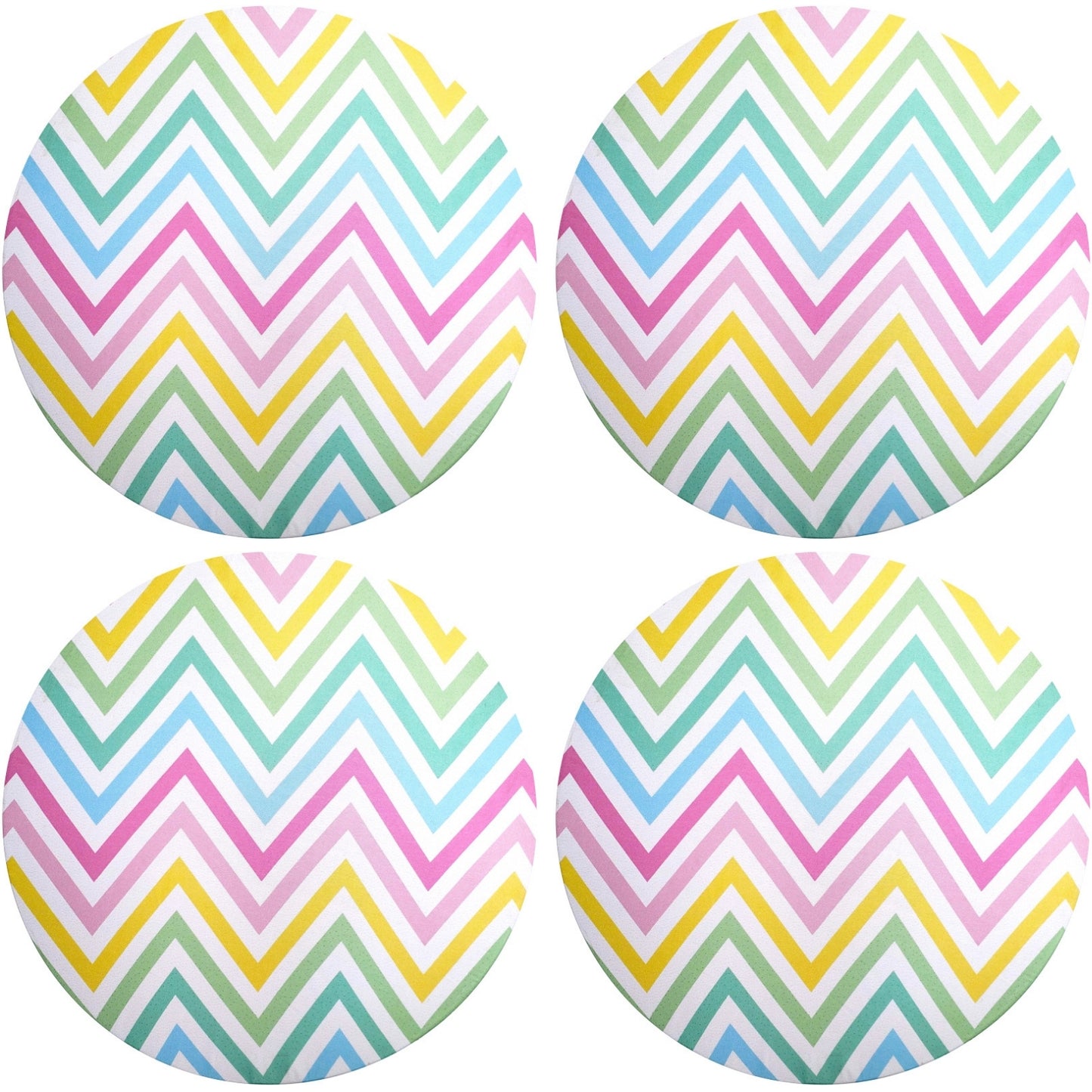 Set of 4 Round Placemats Covers 14 Dia inch Chevron Joy Pastel Corlors Chevron