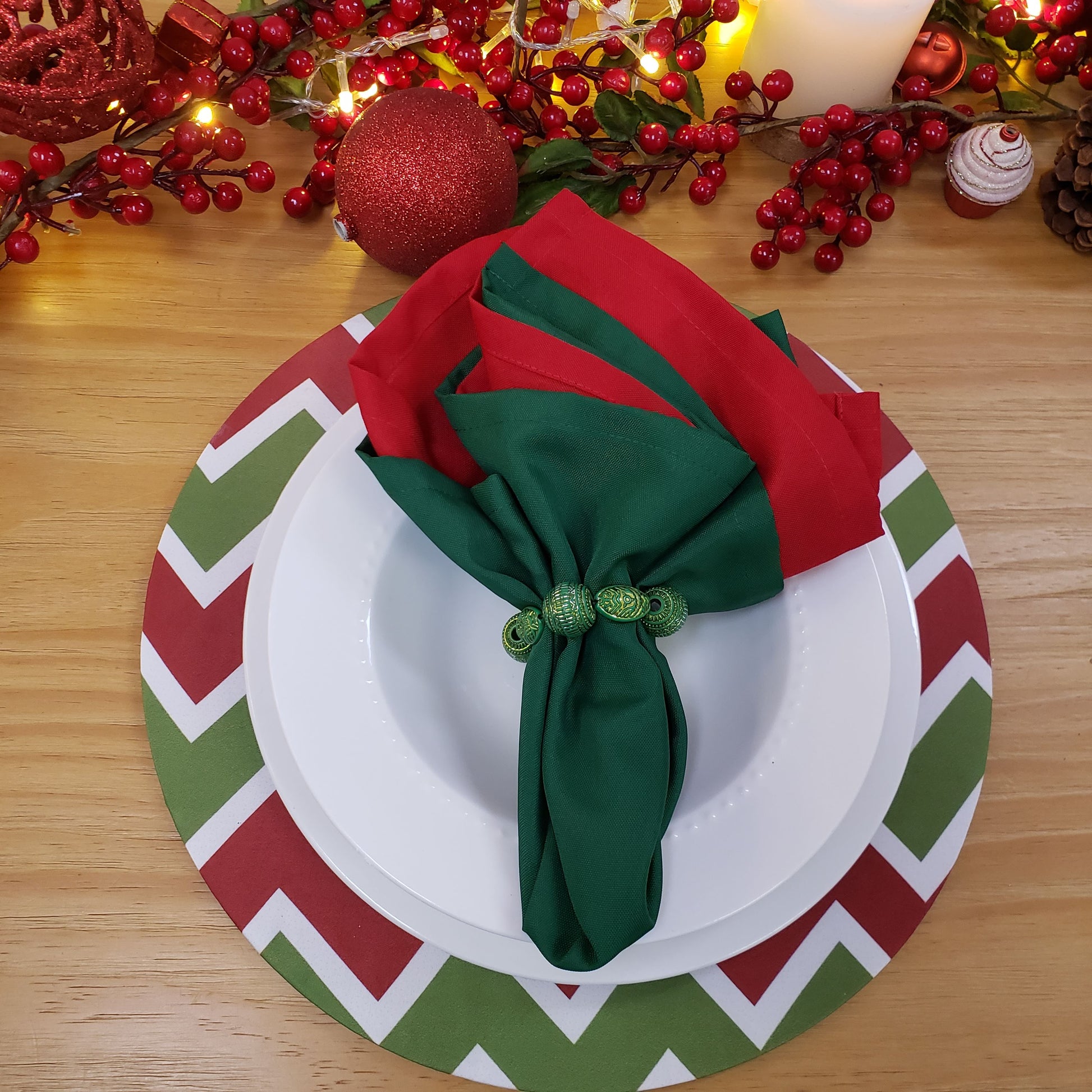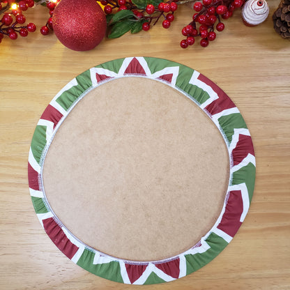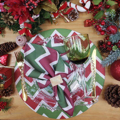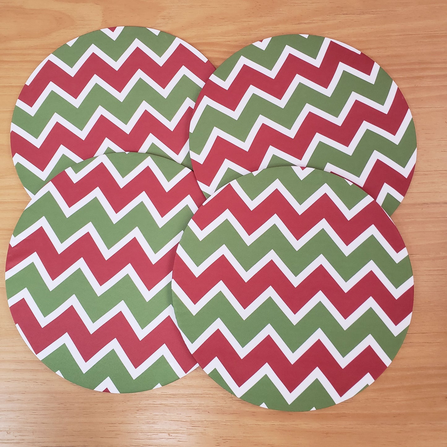 Set of 4 Round Placemats Covers Christmas Chevron Green Red Cloth 14" Dia | Red